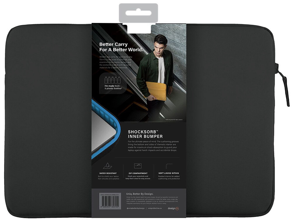 Сумки для ноутбуков Сумки Uniq Сумка Vienna Sleeve для ноутбуков 14", нейлон, черный