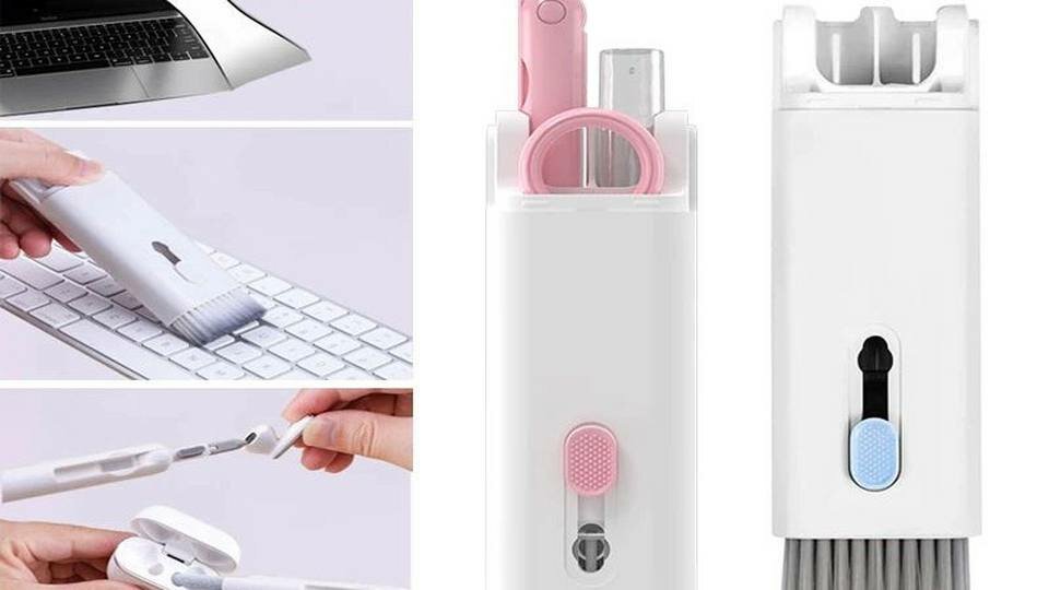 Наушники Щетка для клавиатуры и наушников 7 в 1, многофункциональный набор для чистки гаджетов, Розовый
