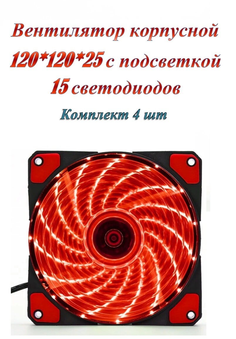 Системы охлаждения Вентилятор / кулер с подсветкой 120*120*25мм красный, 15 (led) светодиодов (4шт.)