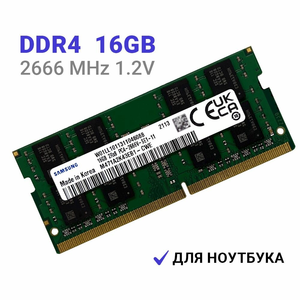 Оперативная память Оперативная память Samsung DDR4 2666 МГц 1x16 ГБ SODMM для ноутбука
