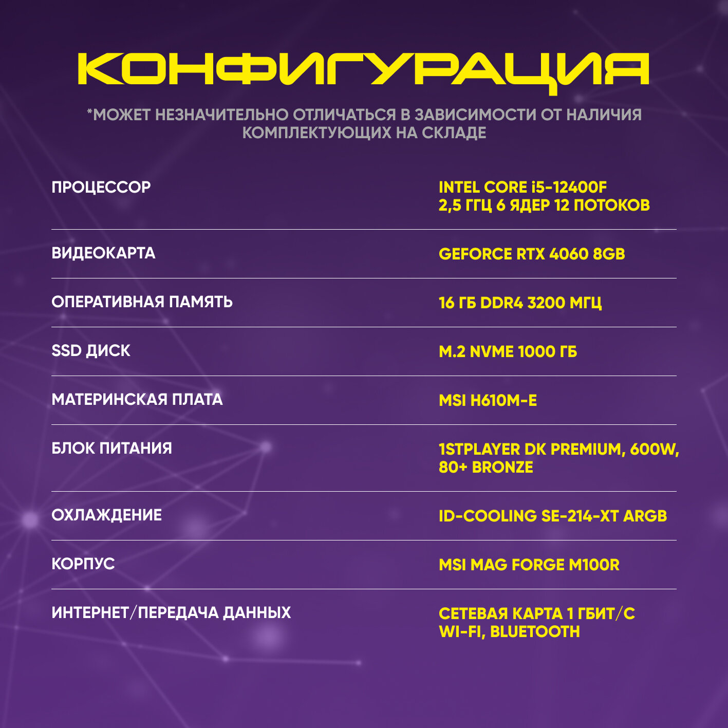 Системный блок игровой AURORA GAMING ПК Игровой компьютер (Intel Core i5-12400F (2.5 ГГц), RAM 32 ГБ, SSD 1000 ГБ, NVIDIA GeForce RTX 4060 (8 ГБ), Wi-Fi, Windows 11 Pro), черный матовый 144 380 ₽ Подробнее