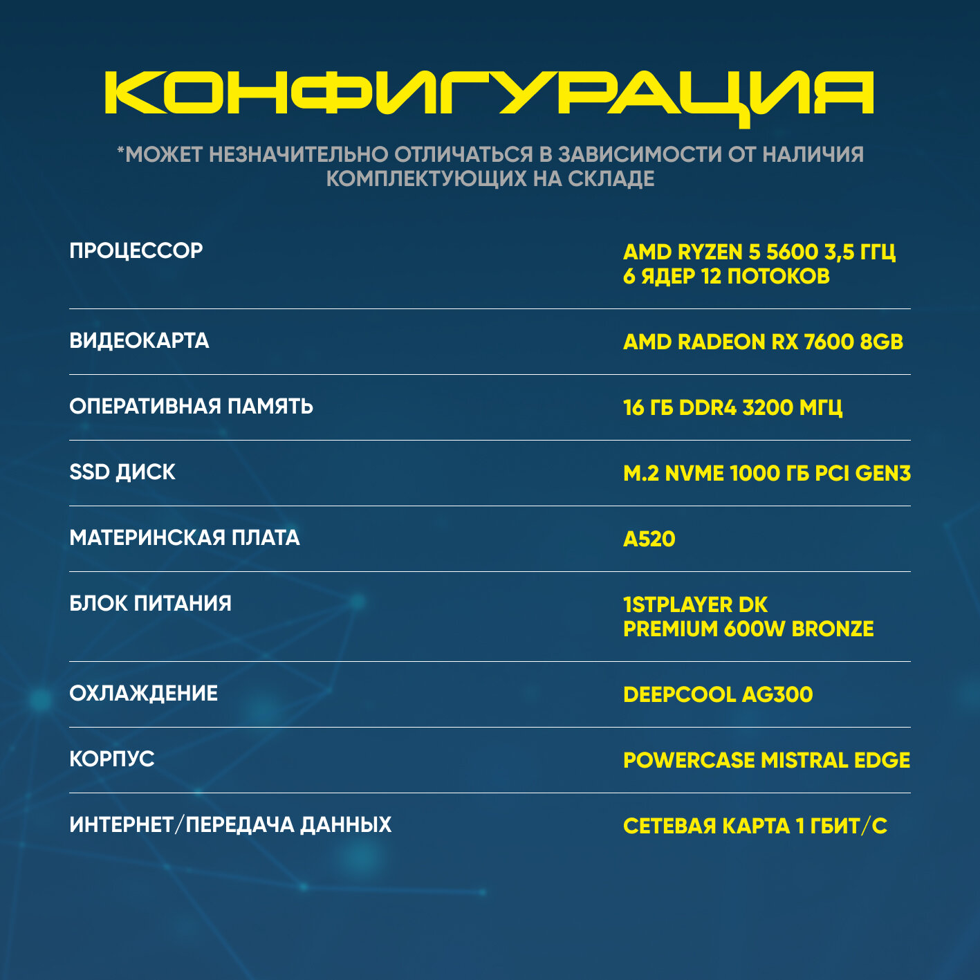 Системный блок игровой AURORA GAMING ПК Игровой компьютер (AMD Ryzen 5 5600 (3.5 ГГц), RAM 16 ГБ, SSD 500 ГБ, AMD Radeon RX 7600 (8 Гб), Windows 11 Pro), черный матовый 200 000 ₽ Подробнее