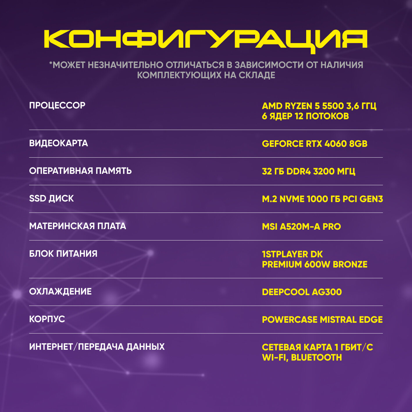 Системный блок игровой AURORA GAMING ПК Игровой компьютер (AMD Ryzen 5 5500 (3.6 ГГц), RAM 32 ГБ, SSD 500 ГБ, AMD Radeon RX 7600 (8 Гб), Windows 11 Pro), черный матовый 200 000 ₽ Подробнее