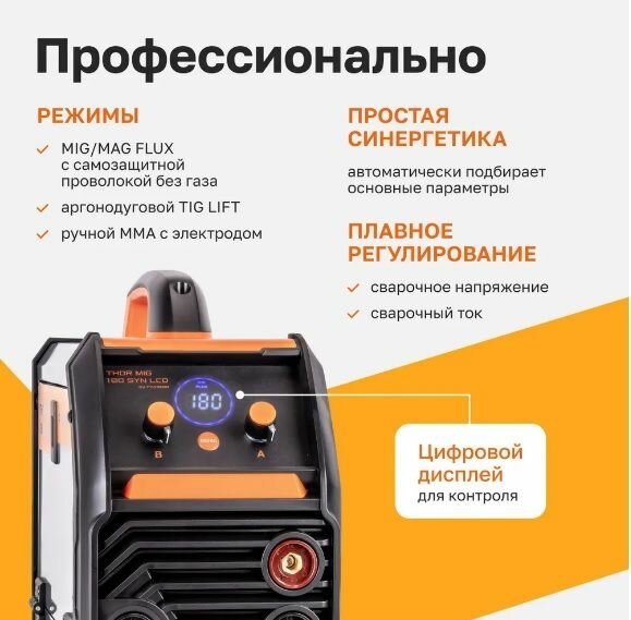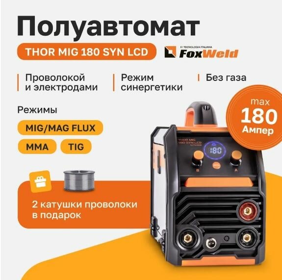 Сварочные аппараты Сварочный аппарат полуавтомат с синергетикой THOR MIG 180 SYN LCD 180А (3 в 1)Проволока в подарок