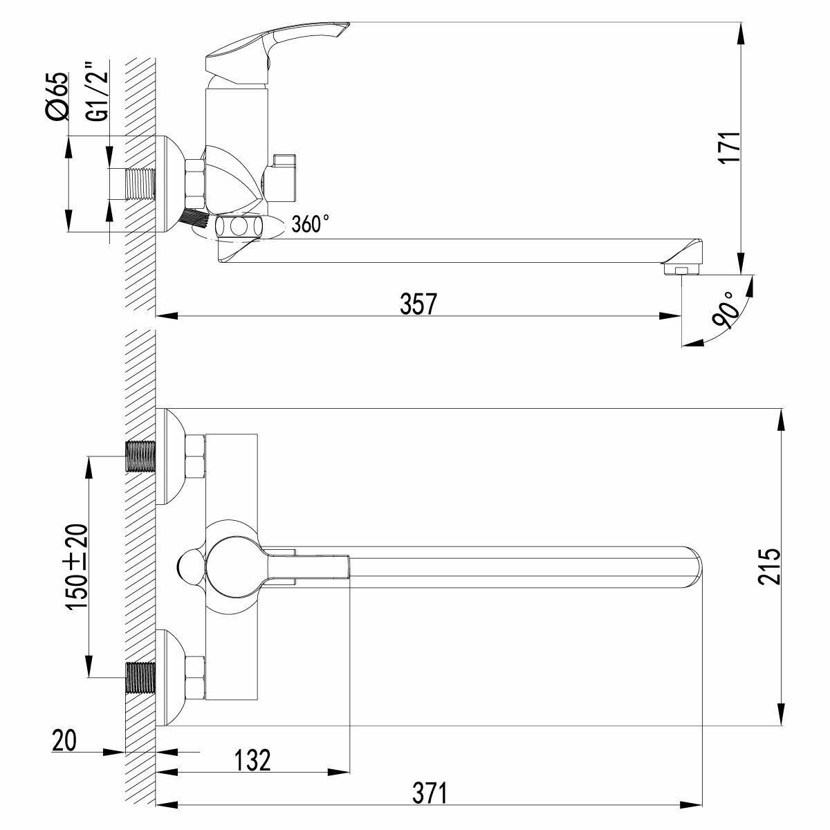 | Глубина струи | 371 мм / излив — 300 мм / |