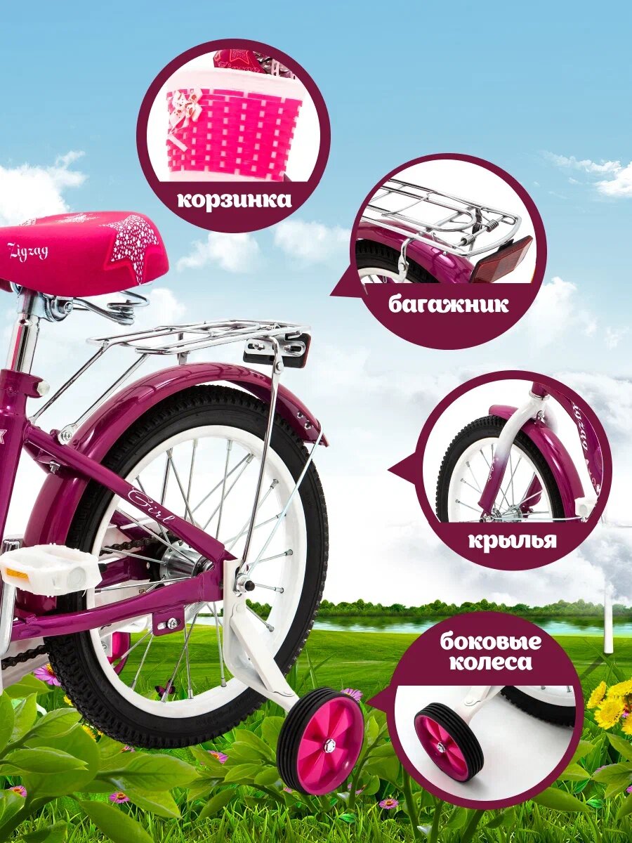 Детские велосипеды Велосипед детский двухколесный 16" ZIGZAG GIRL малиновый для детей от 4 до 6 лет на рост 100-125см (требует финальной сборки)