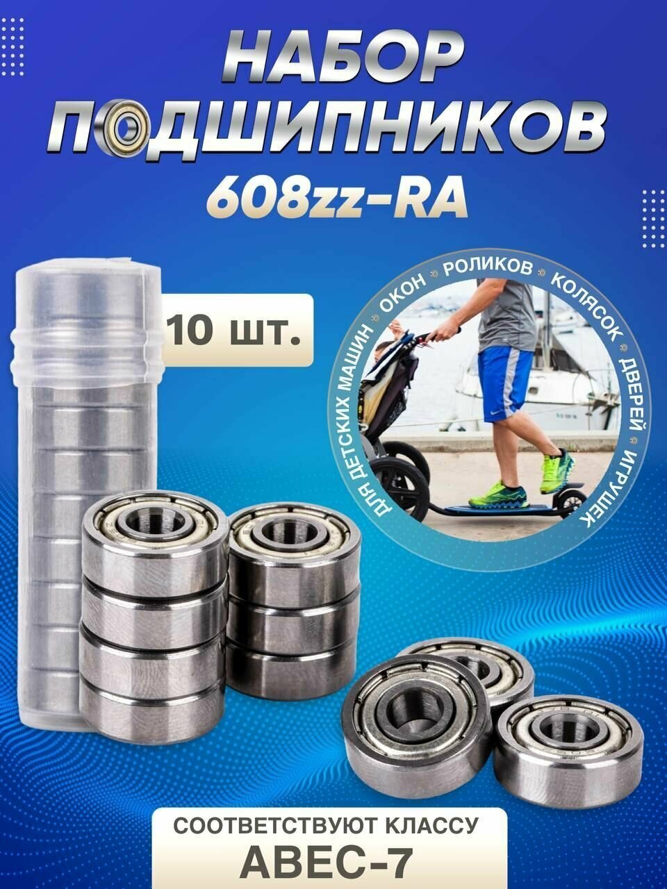 Самокаты Подшипники Abec 7 608 zz комплект 10 шт для самоката, для роликов, скейтборда; комплект 10 шт