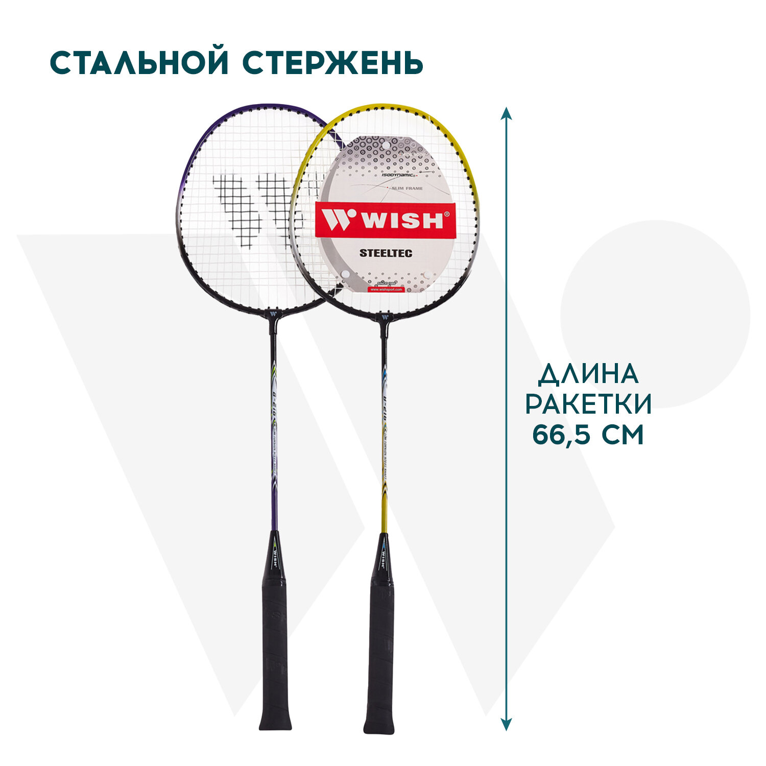 Ракетки для сквоша Набор для бадминтона WISH Steeltec 216 (2 ракетки+2 волана), фиолетовый/желтый