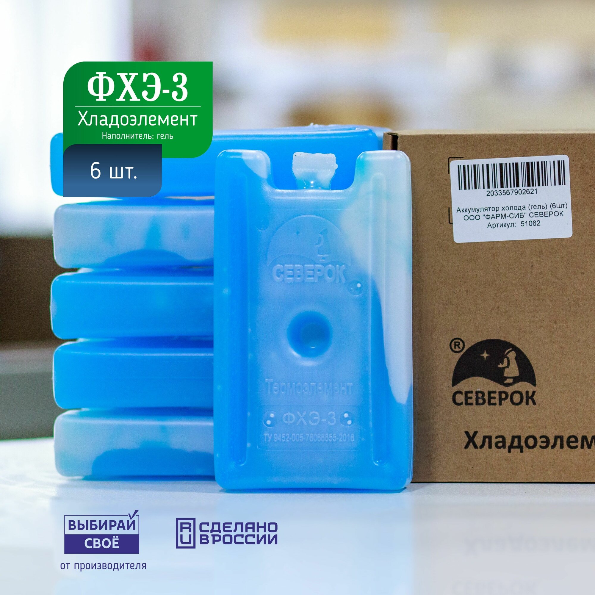 Автохолодильники Аккумулятор холода гелевый "Северок" ФХЭ-3 (6 штук по 400мл)