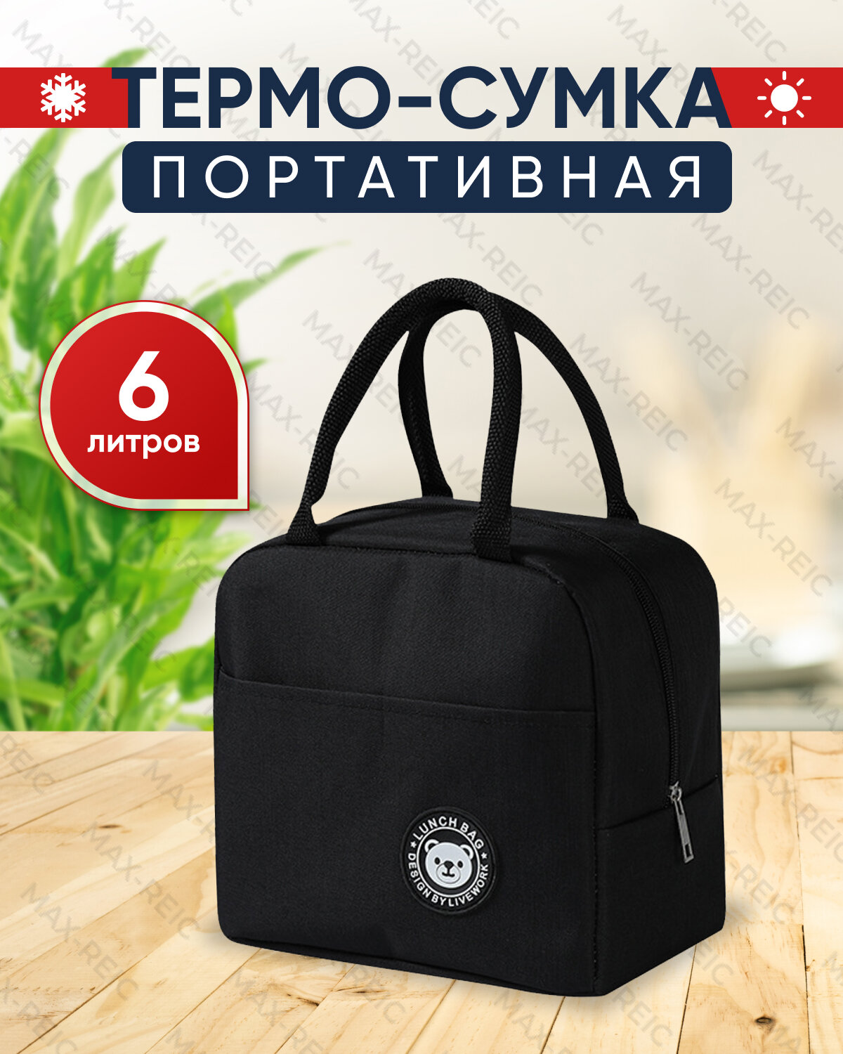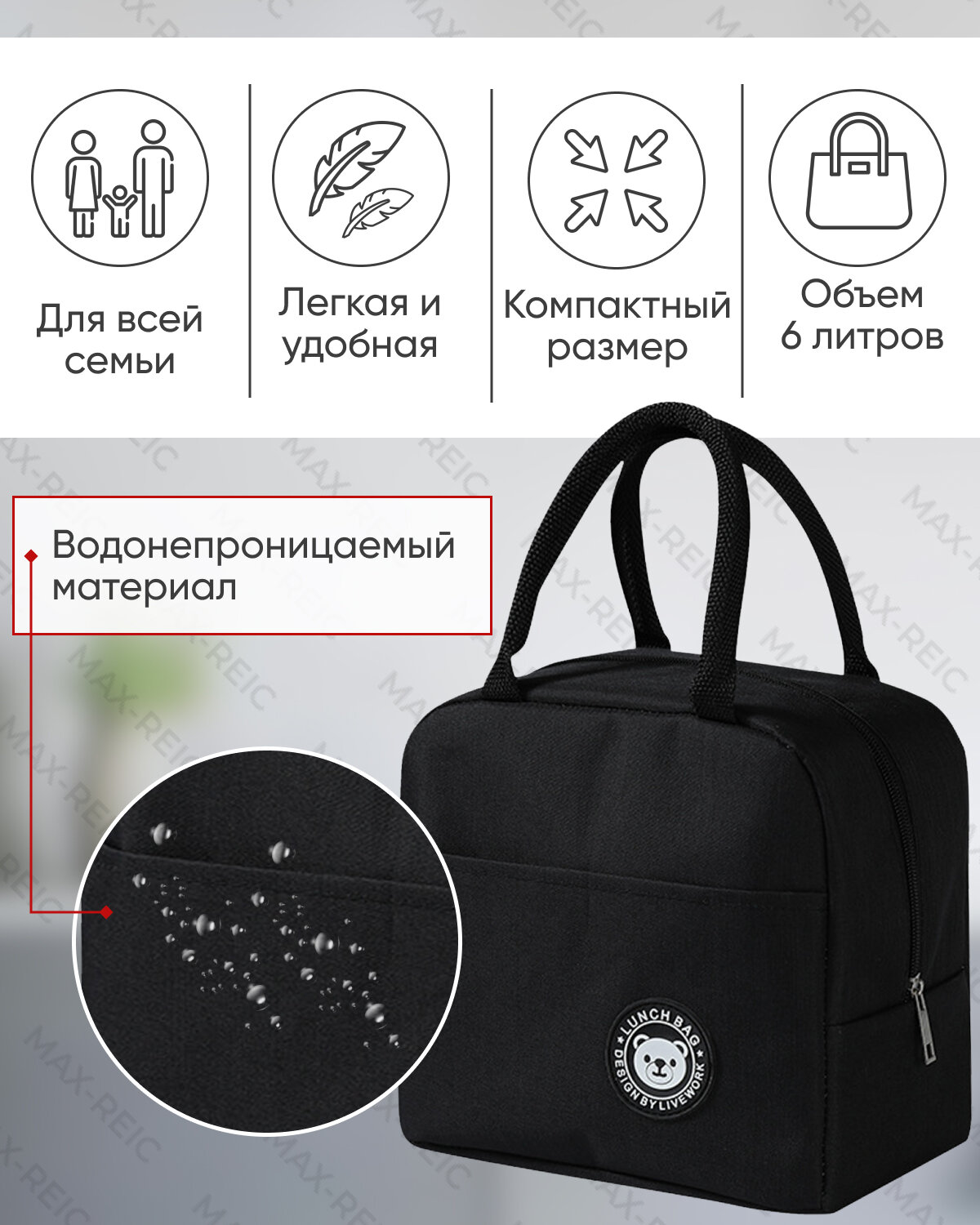 Термосумки Сумка холодильник R-MAX объемом 6 литров, крепкими водонепроницаемыми швами для сохранения продуктов в тепле или холоде, черная