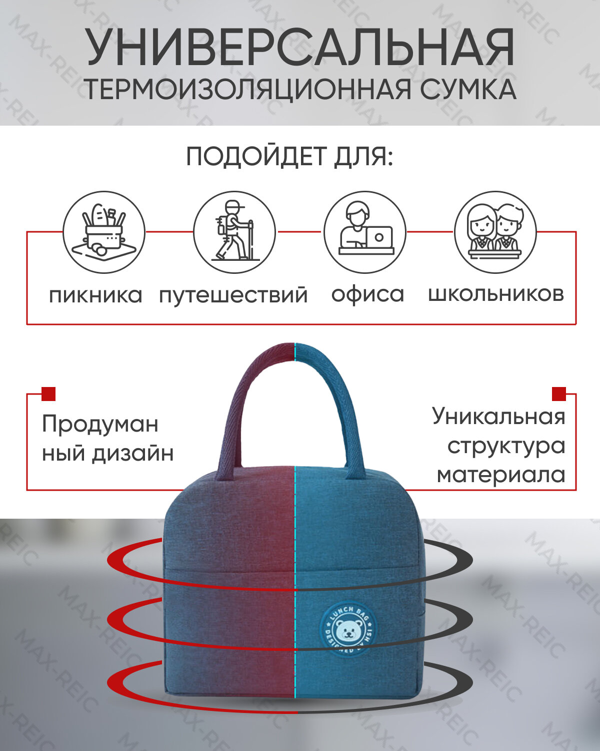 Сумка холодильник R-MAX объемом 6 литров, крепкими водонепроницаемыми швами для сохранения продуктов в тепле или холоде, бордовая 589 ₽ Подробнее