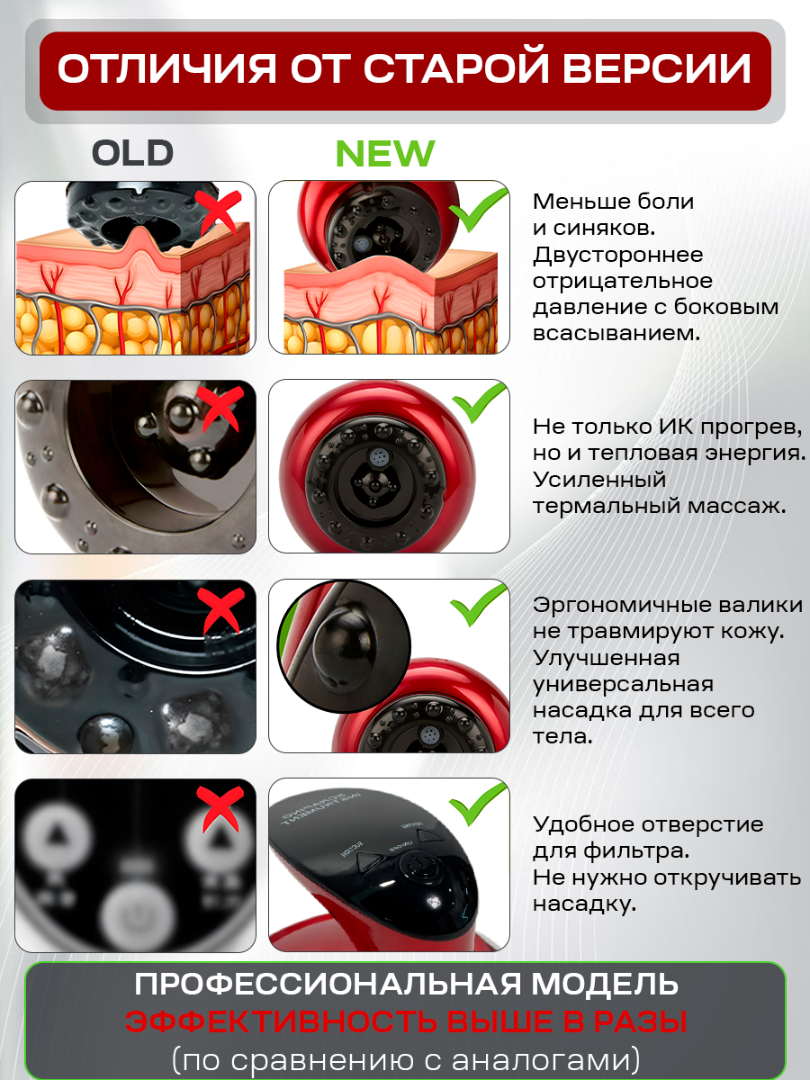 | Режимы | точечный / расслабляющий / похлопывание / антицеллюлитный |