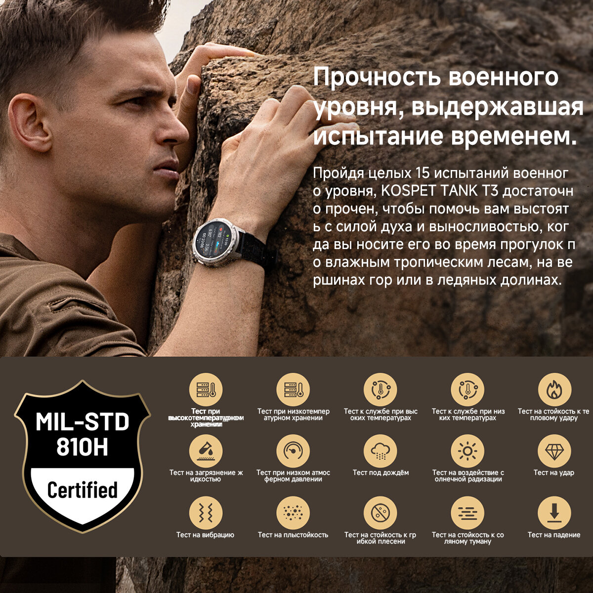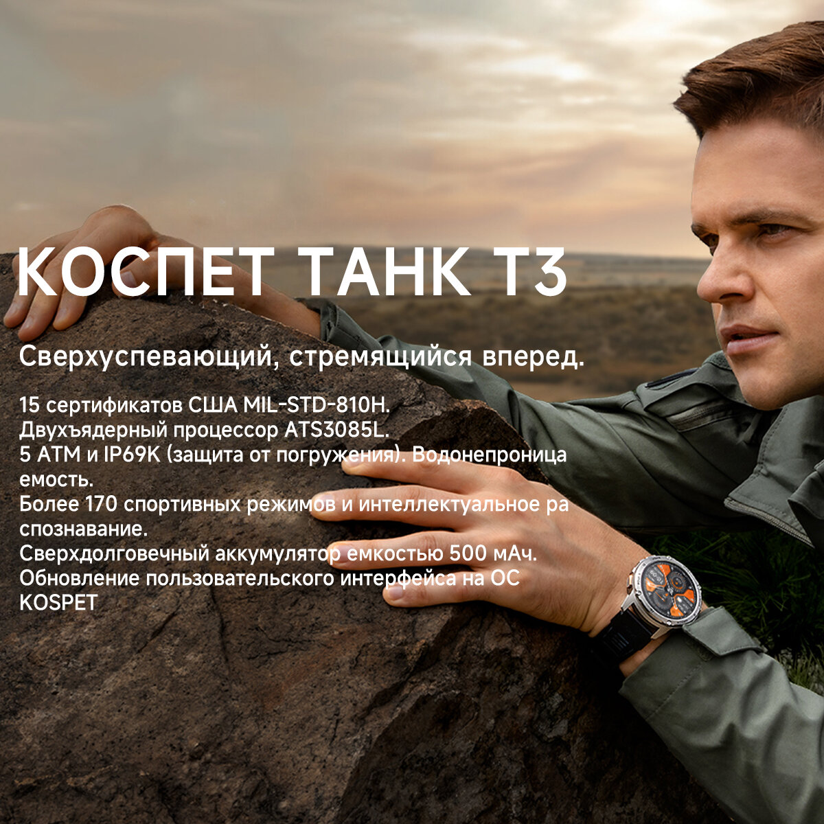 Смарт часы и фитнес браслеты Kospet Умные часы T3 для мужчин водонепроницаемый жесткий военный 1.46" AMOLED Смарт часы