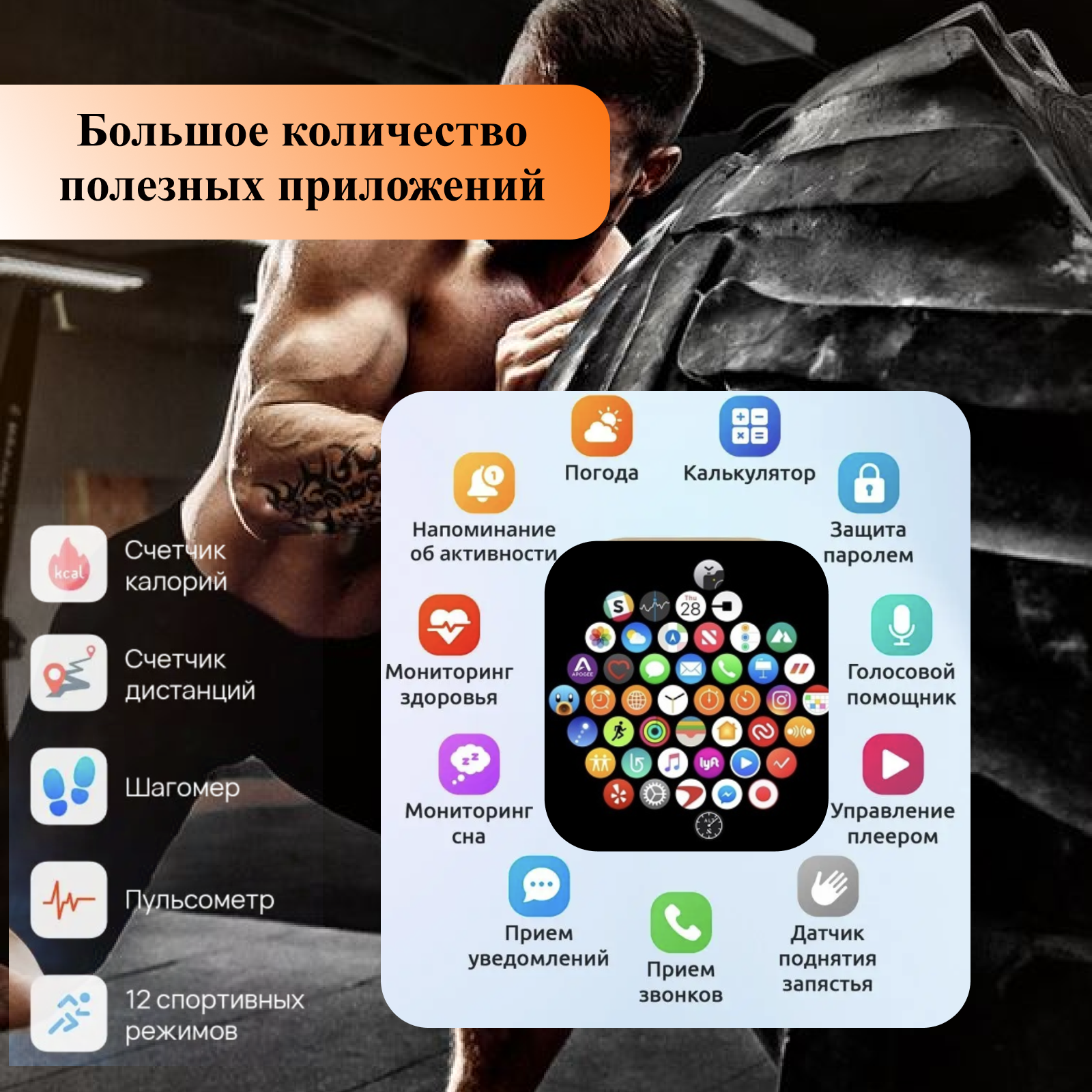 | Размеры (без ремешка) | 50x44x12 мм |