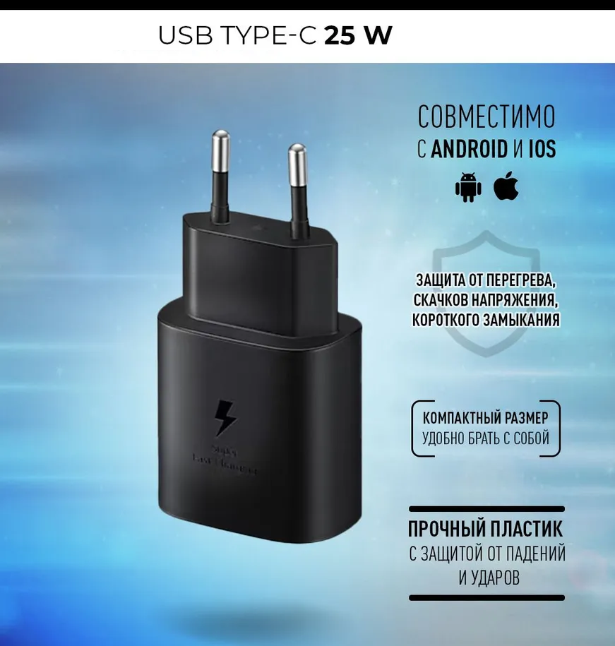 Зарядки для гаджетов Зарядное устройство для Samsung 25w, Type-C, Черный
