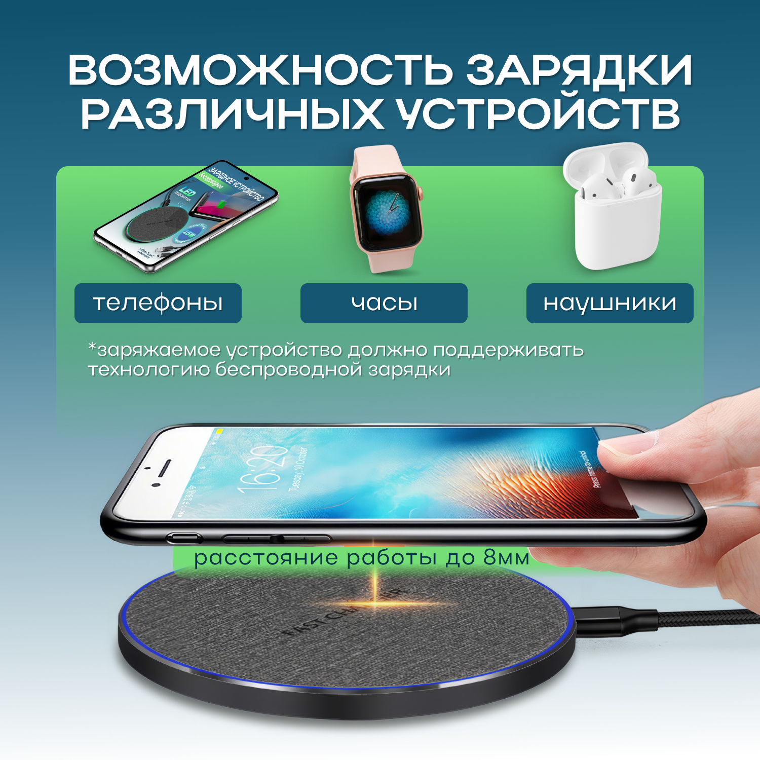 Зарядки для гаджетов Беспроводная зарядка Quick Charge 15 Вт для смартфонов, наушников и смарт-часов