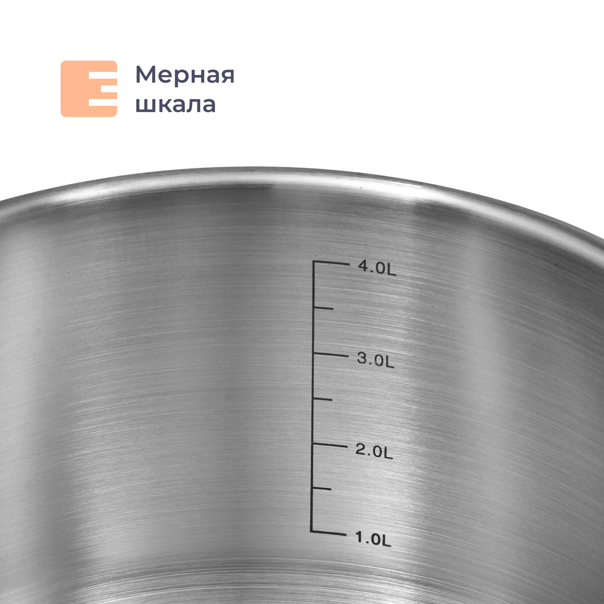 Кастрюли Кастрюля Homsly из нержавеющей стали, 5 л, со стеклянной крышкой