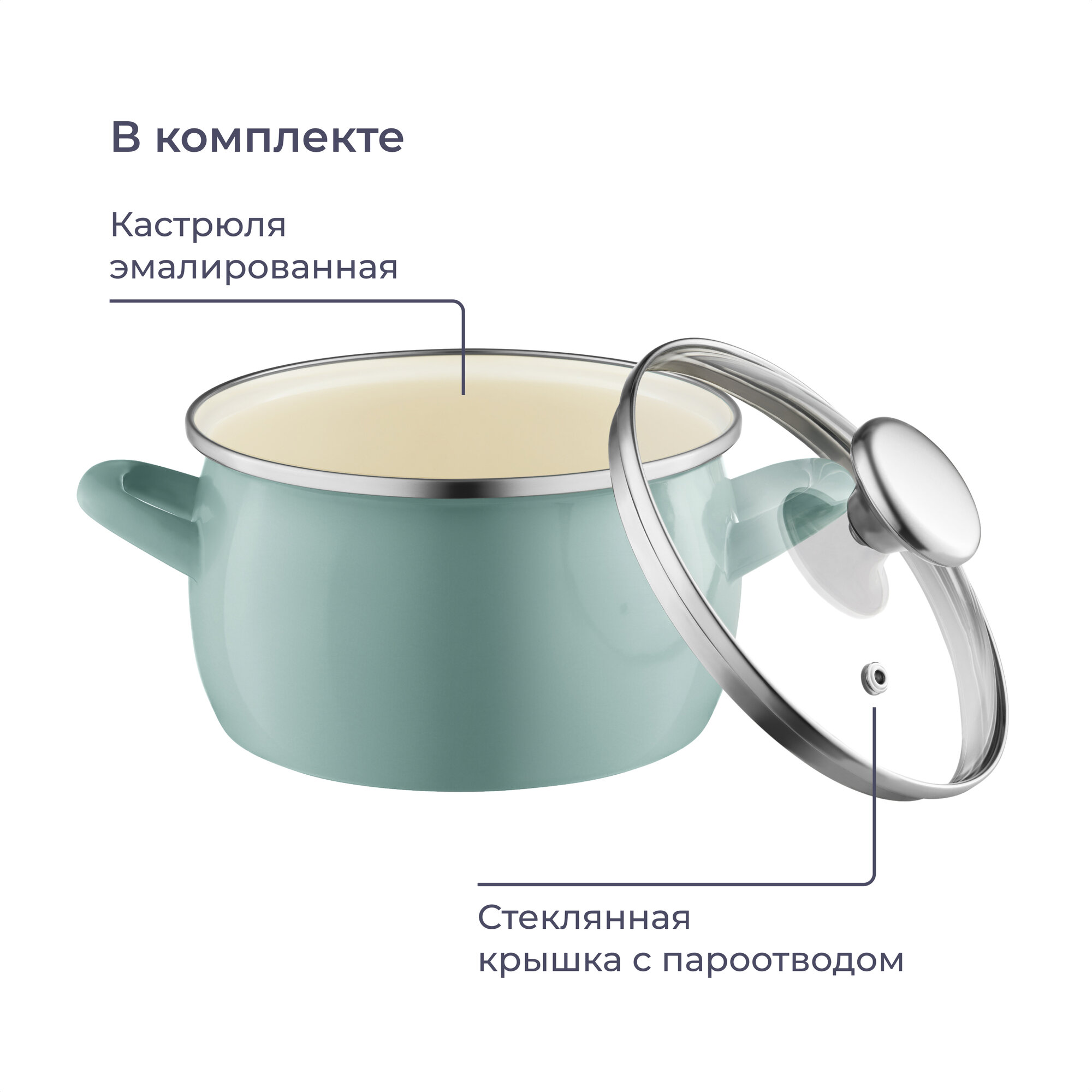 Кастрюли Кастрюля эмалированная Homsly 2,2 л, зелёная