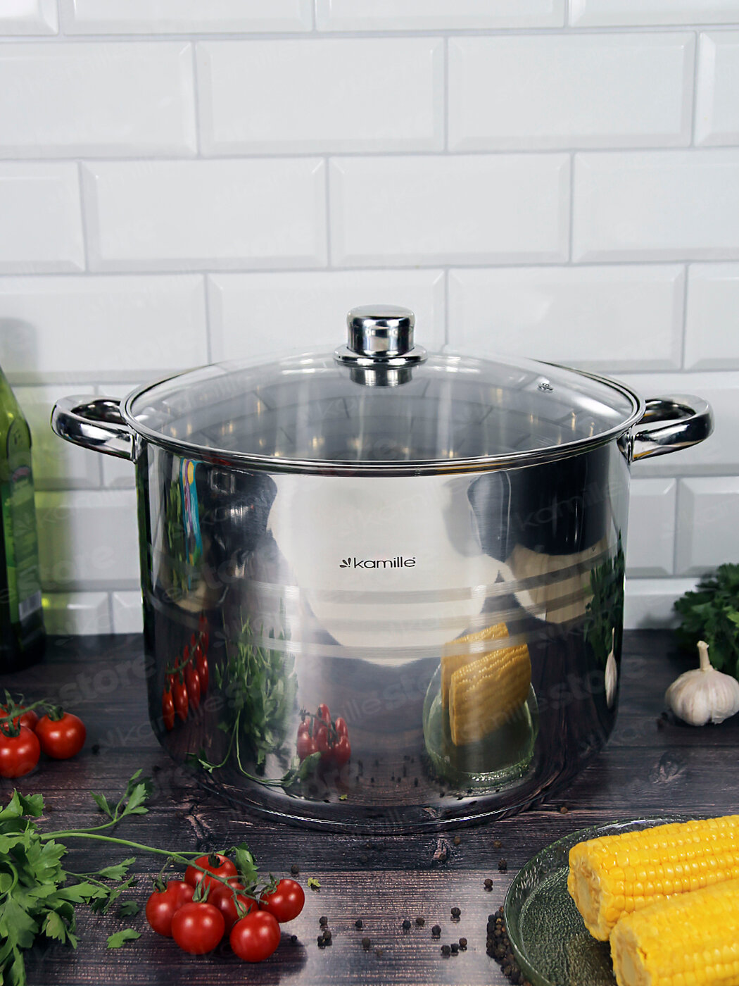 Кастрюля 13 л. из нержавеющей стали Kamille KM 5405 со стеклянной крышкой (13 л. / серебристый) 3 570 ₽ Подробнее
