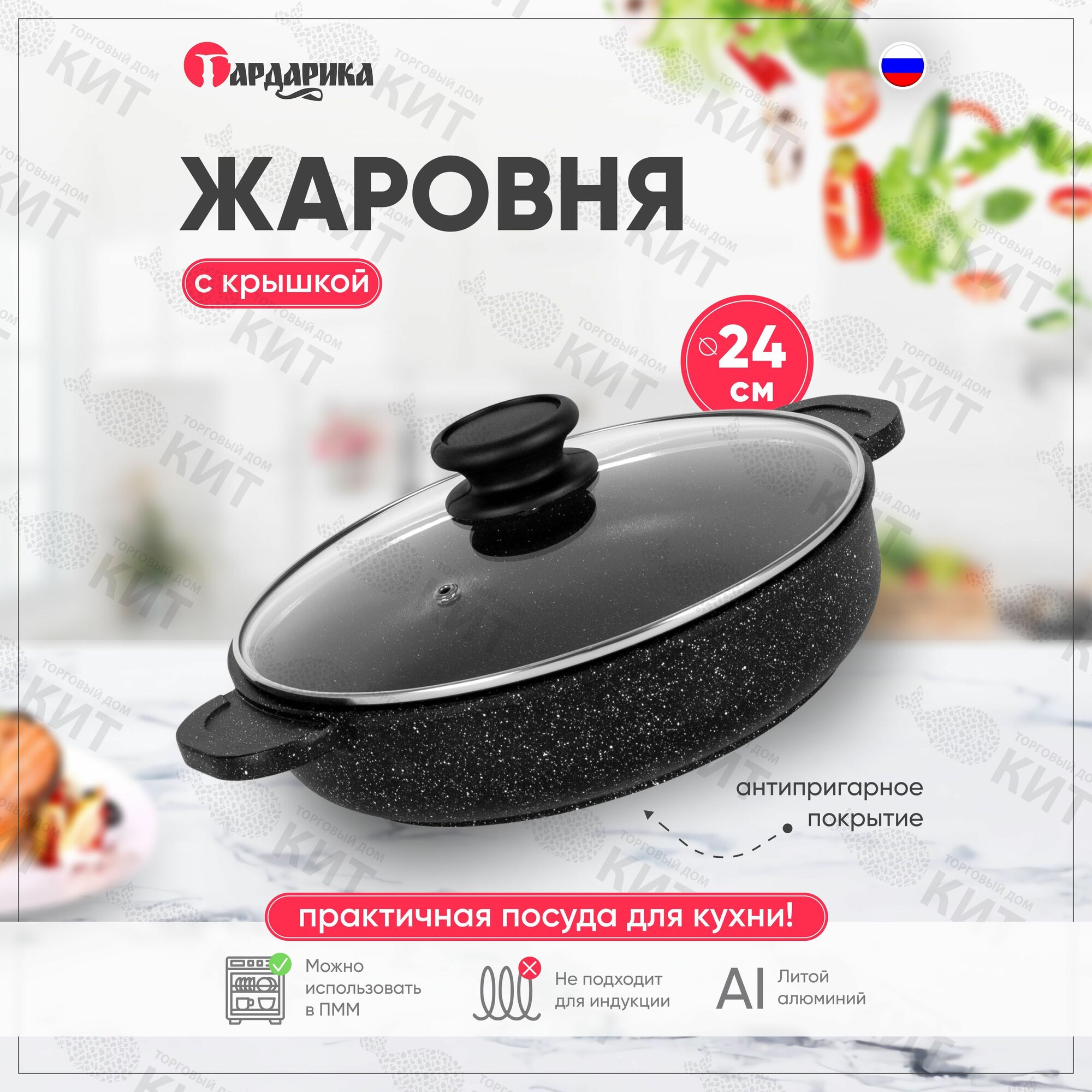 Сковородки Жаровня с крышкой 24 см литая с усиленным антипригарным покрытием, Гардарика Орион