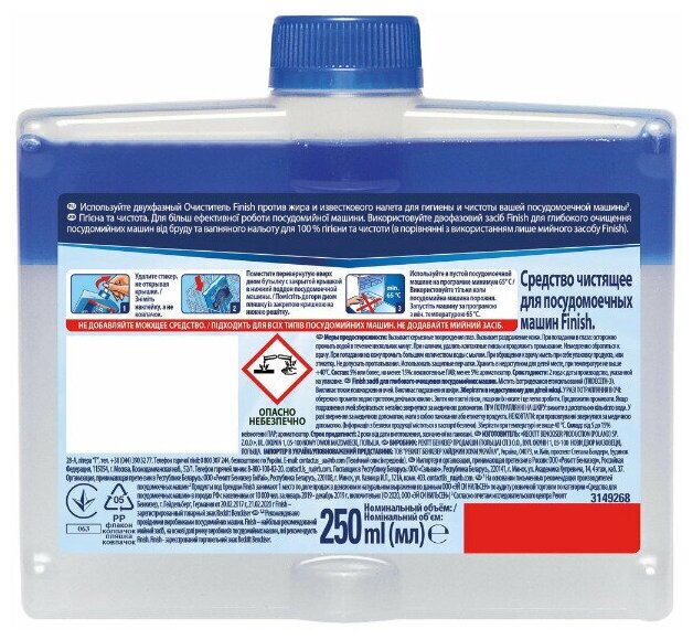 Картриджи Finish Очиститель для посудомоечных машин, 250 мл, 2 шт