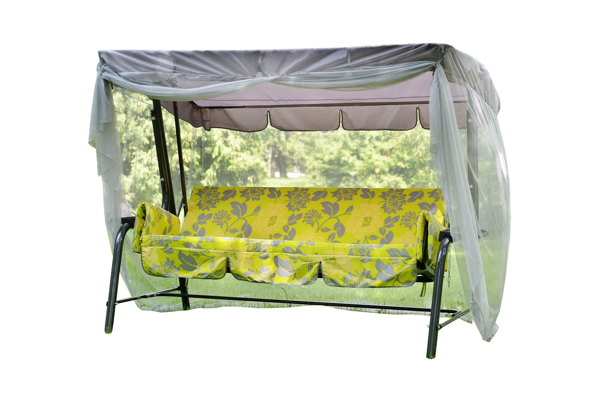 Садовые качели 3-местные с москитной сеткой Olsa Сиена серый/цветы