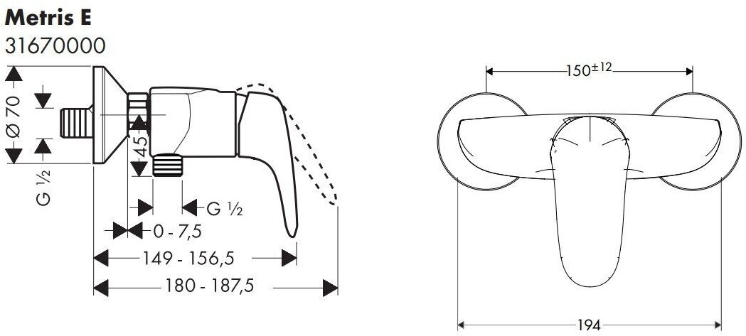 Смеситель Hansgrohe Metris E 31670000 Смеситель для душа