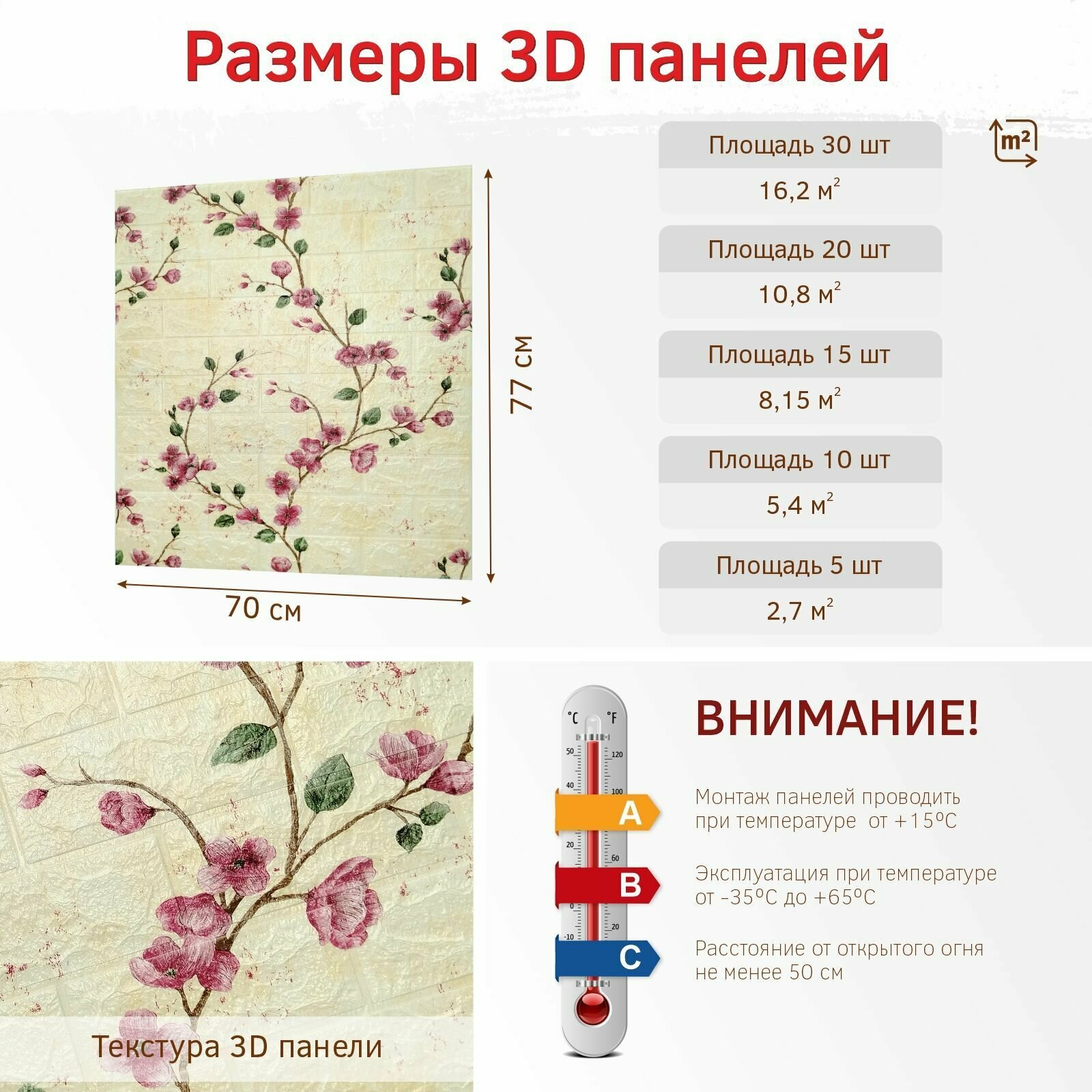 Плиты 3д самоклеющаяся панель для стен "Кирпич сакура розовая" 10 шт. 700*770*4 мм обои с цветами для кухни моющиеся влагостойкие фартук на стену