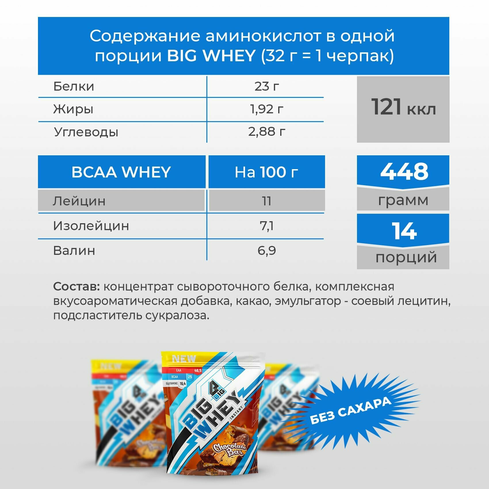 Протеин BIGSNT BIG WHEY сывороточный для набора мышечной массы, похудения и сушки, 448 г, 14 порций, Баунти 1 128 ₽ Подробнее