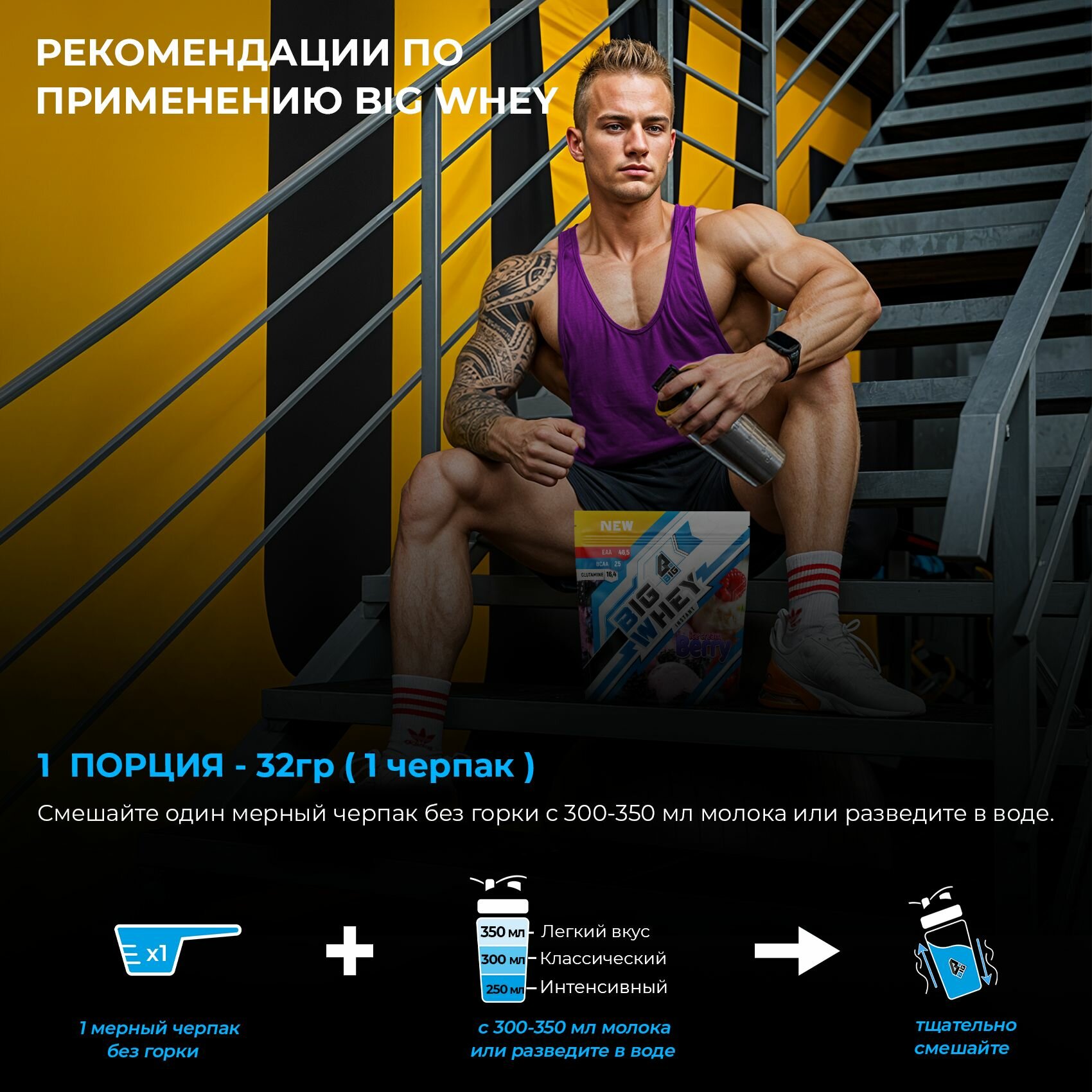 Протеины Протеин BIGSNT BIG WHEY сывороточный со вкусом Ягодное мороженое для набора мышечной массы, похудения, сушки/ спортивное питание, 900 г, 28 порций