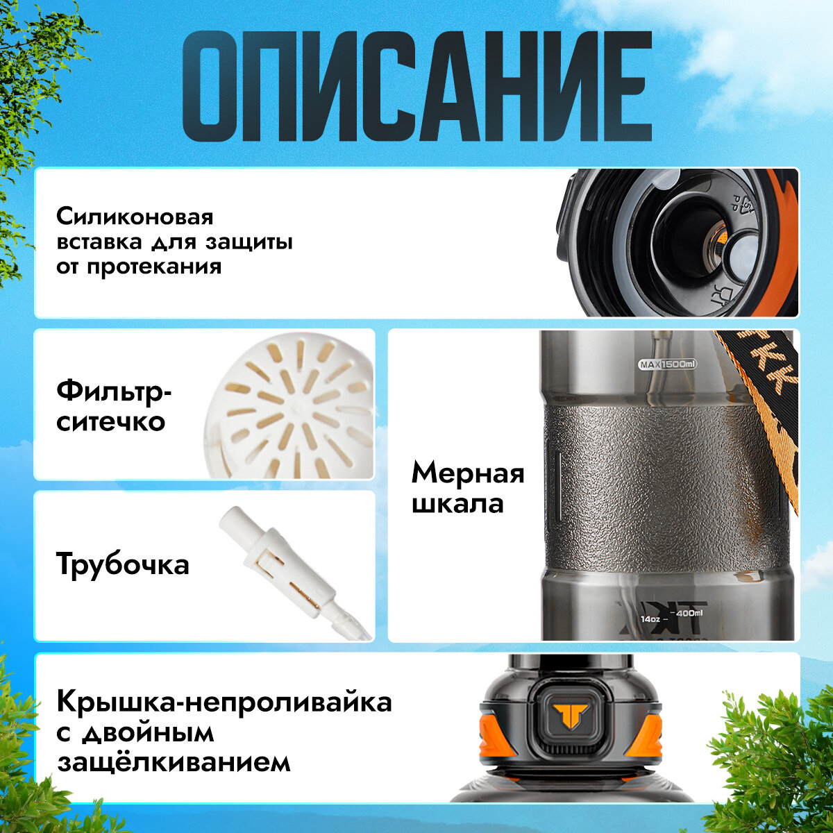 Спортивная фитнес бутылка фляга для воды TKK Premium из тритана с трубочкой, 1000 мл, чёрная 1 680 ₽ Подробнее