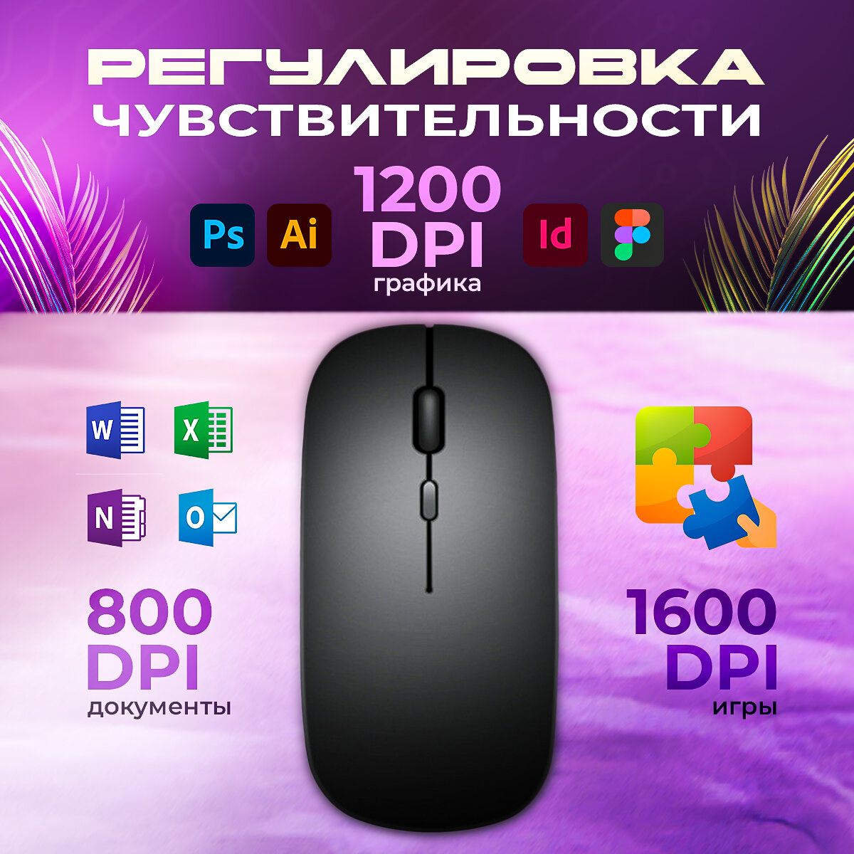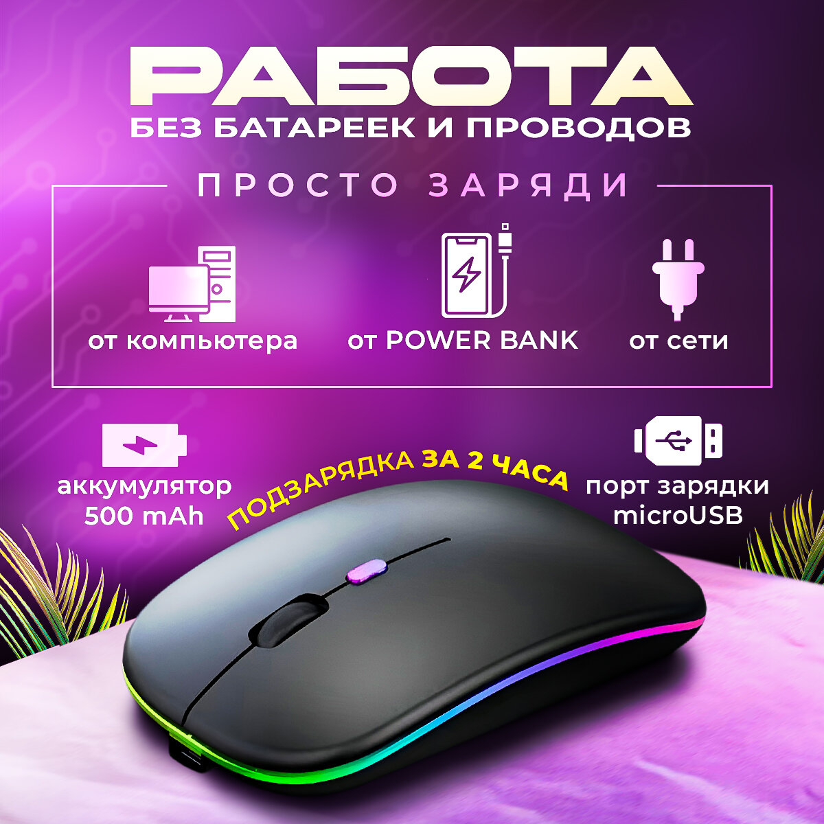 Мышки Мышка беспроводная компьютерная для ноутбука с подсветкой, для пк с Bluetooth подключением (черная)