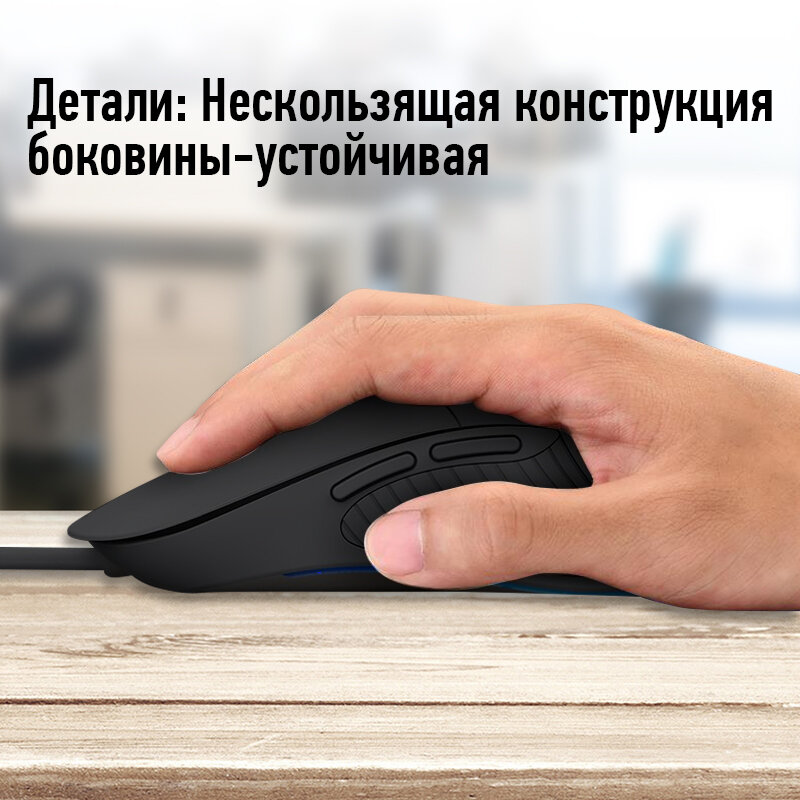 Мышки Игровая проводная бесшумная мышь INPHIС PB1P с подсветкой, 7200dpi, черный
