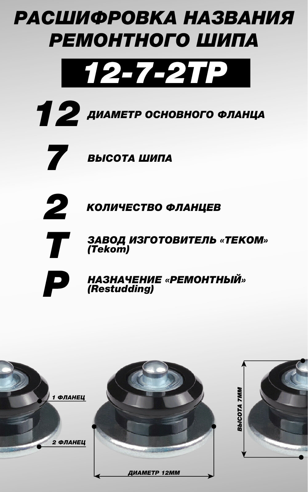 Шипы ремонтные, оригинальные, Теком, 12-7-2ТР, фасовка 100 шт. 670 ₽ Подробнее