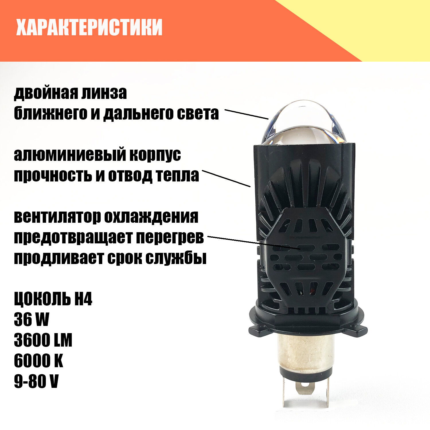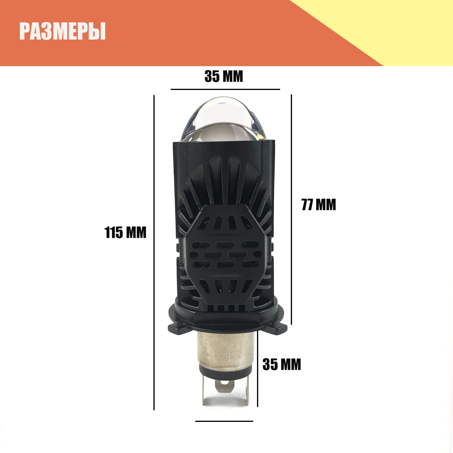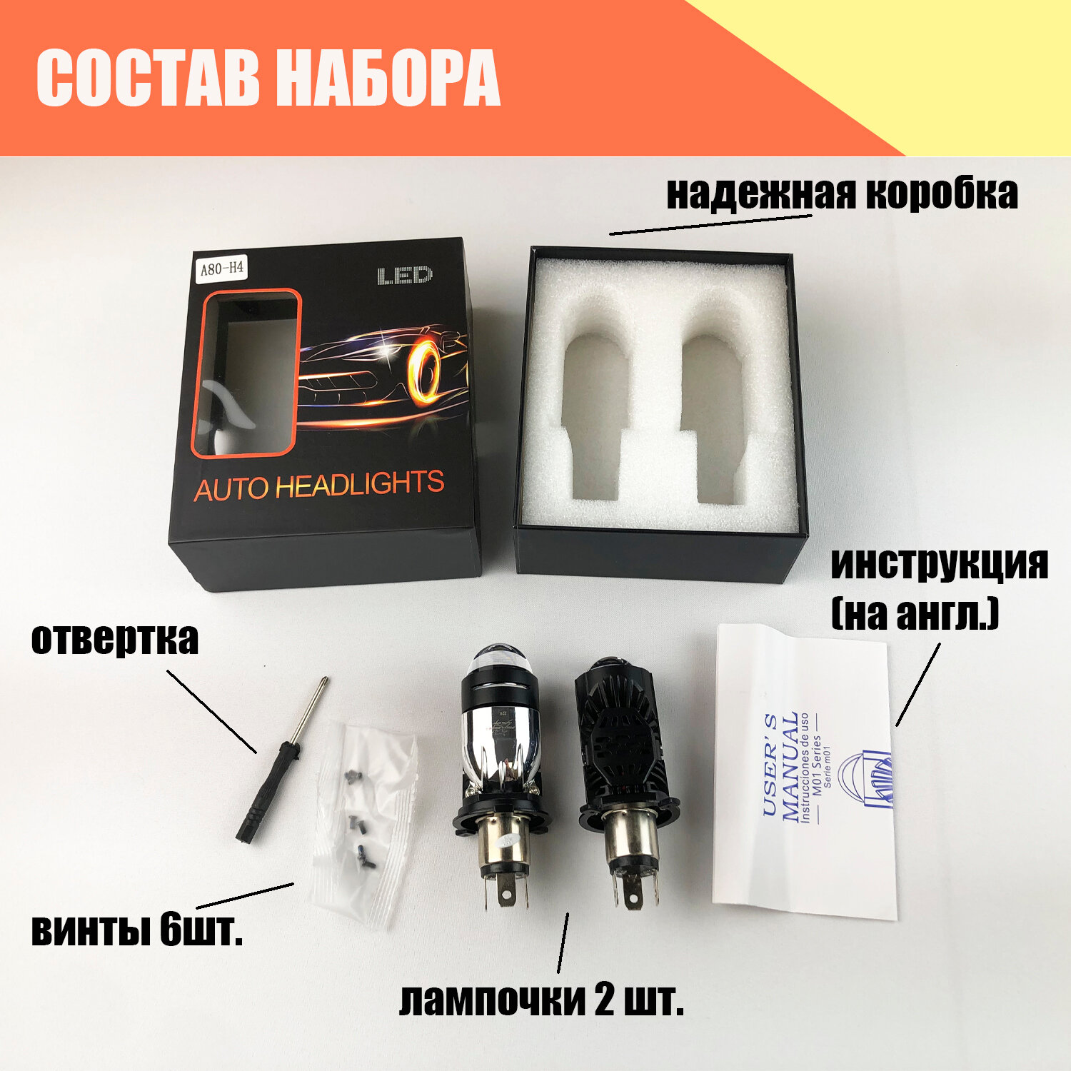 Автолампы Лампочки светодиодные с двойной линзой A80 2шт. цоколь H4, прямая установка, ближний и дальний свет