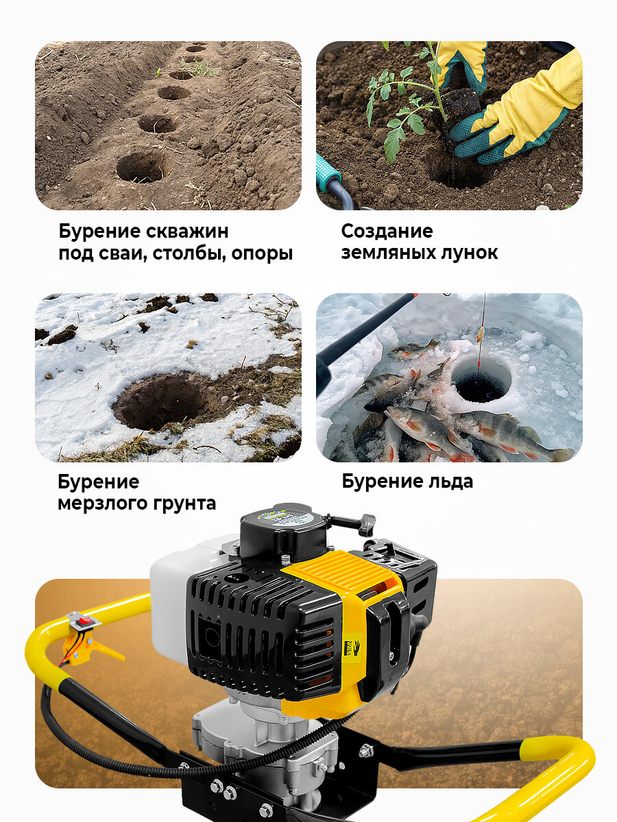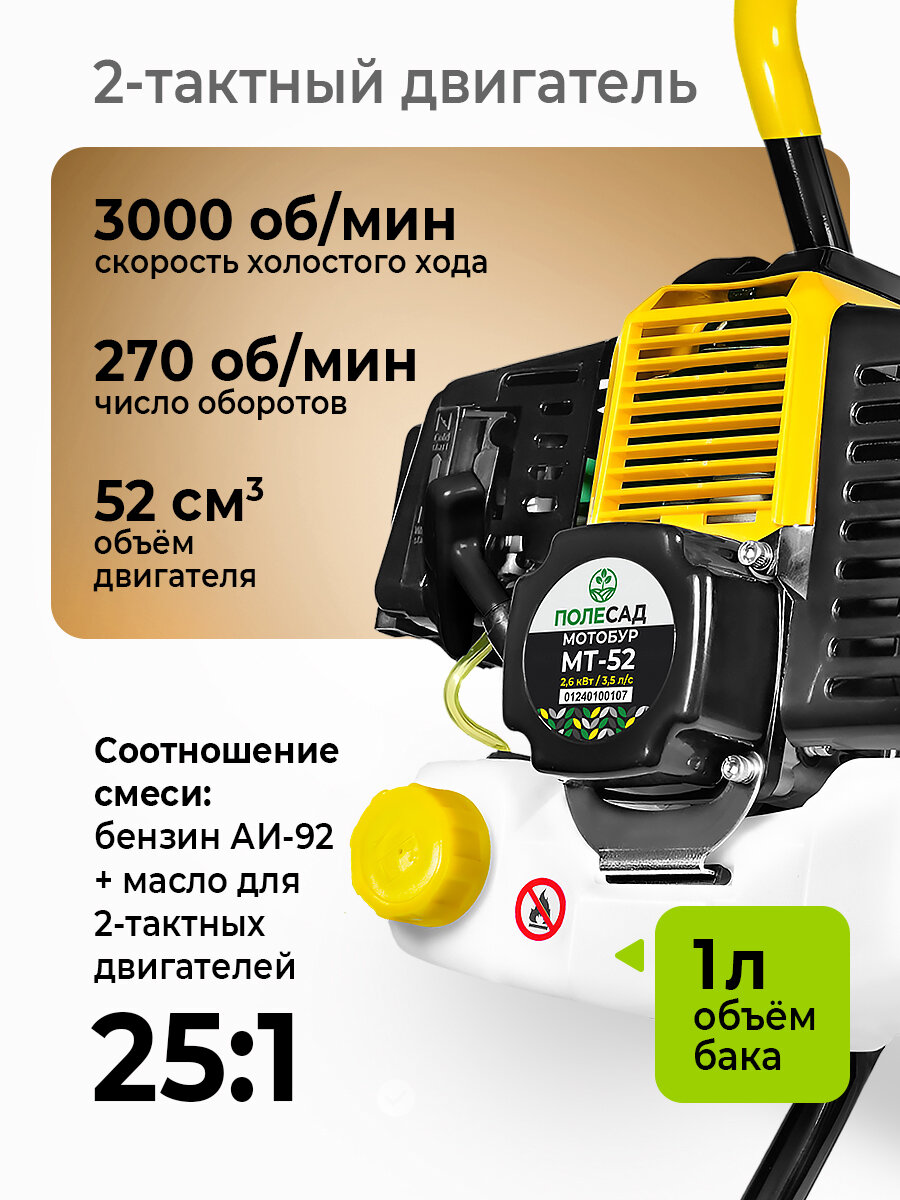 Мотобуры Мотобур шнековый полесад МТ-52 / бензиновая буровая машина/ ледобур 2,6 кВт, 3200 об/мин