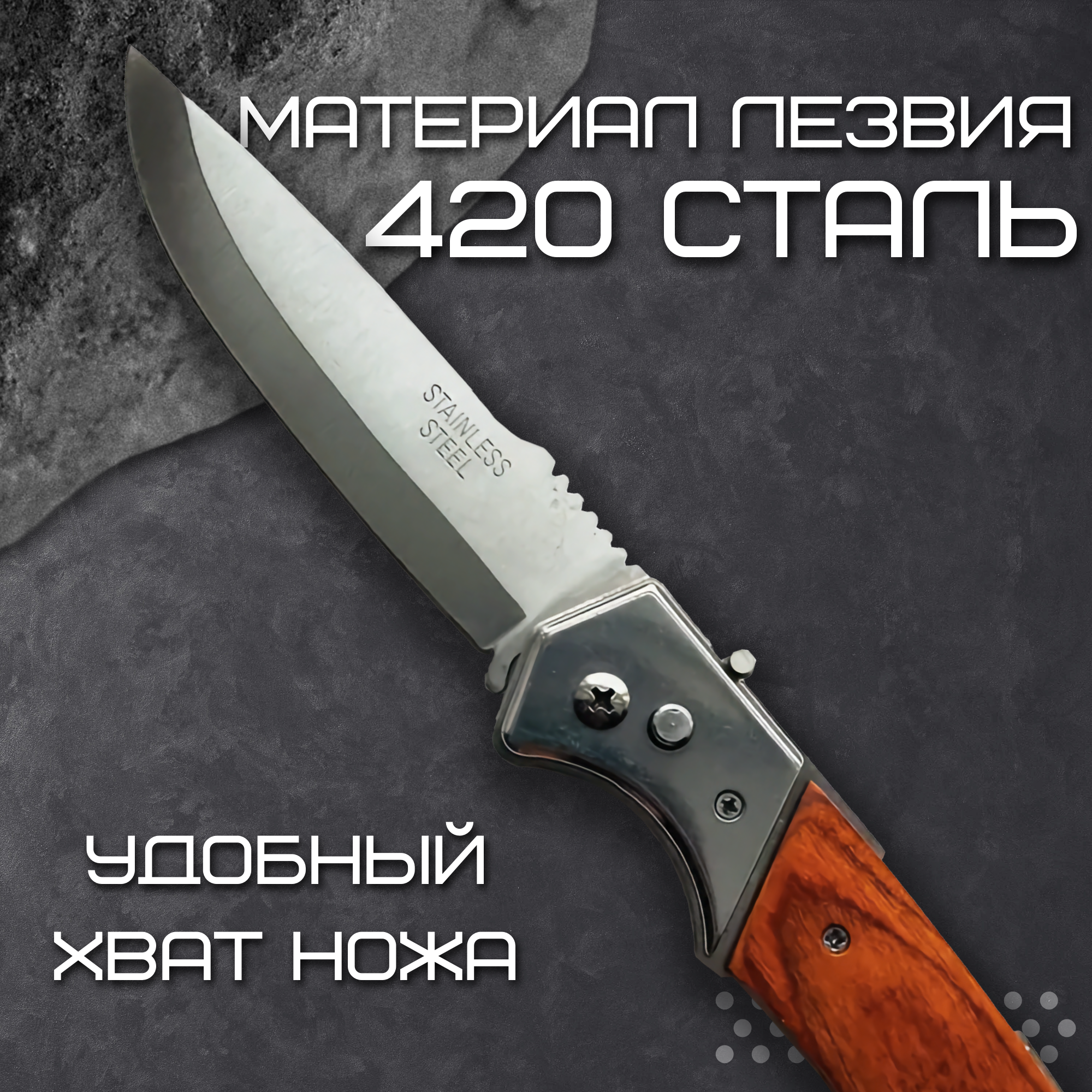 Палатки Складной автоматический нож, деревянная рукоять, длина клинка 11 см