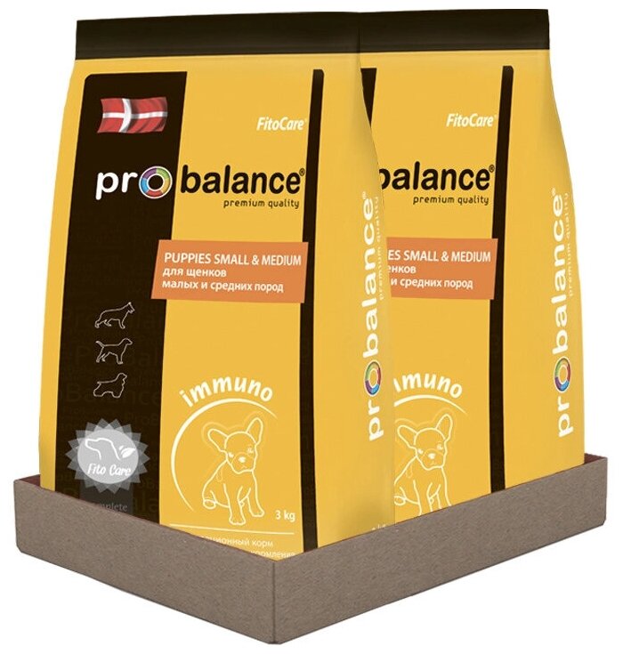 Корм для собак Probalance Сухой корм для щенков малых и средних пород укрепление и поддержание иммунитета оптимальное развитие 44 PB 215 3 кг 54868 (2 шт)