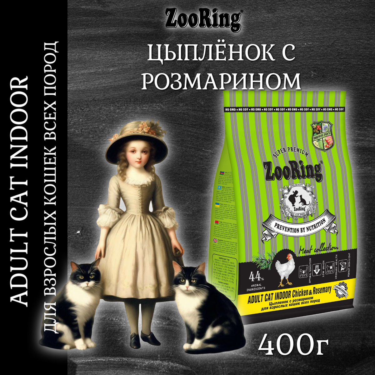 Корм для кошек Сухой корм ZooRing ADULT CAT INDOOR цыпленок с розмарином для кошек, 400г