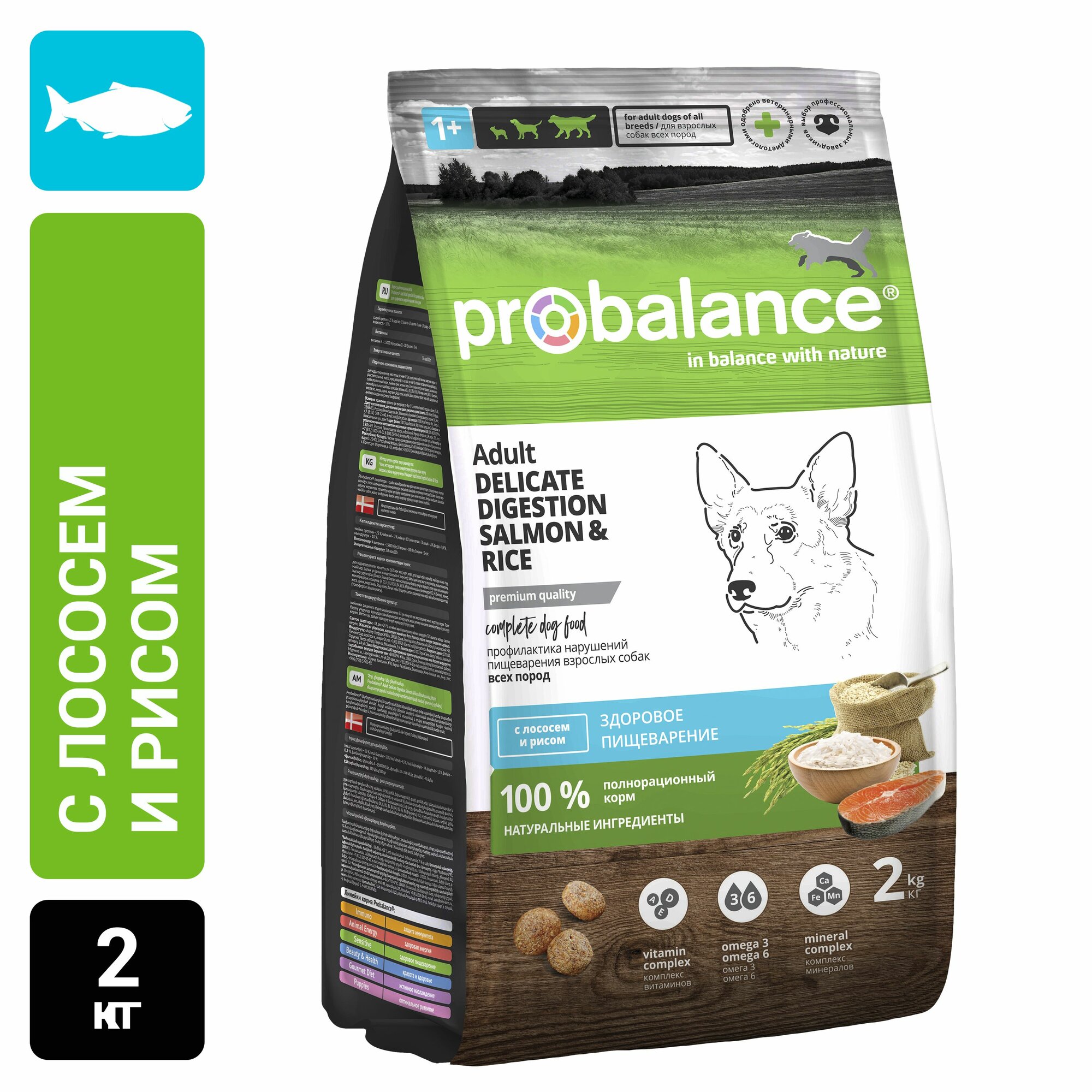 Probalance д/собак Adult Delicate Digestion, с лососем и рисом, мешок 15 кг