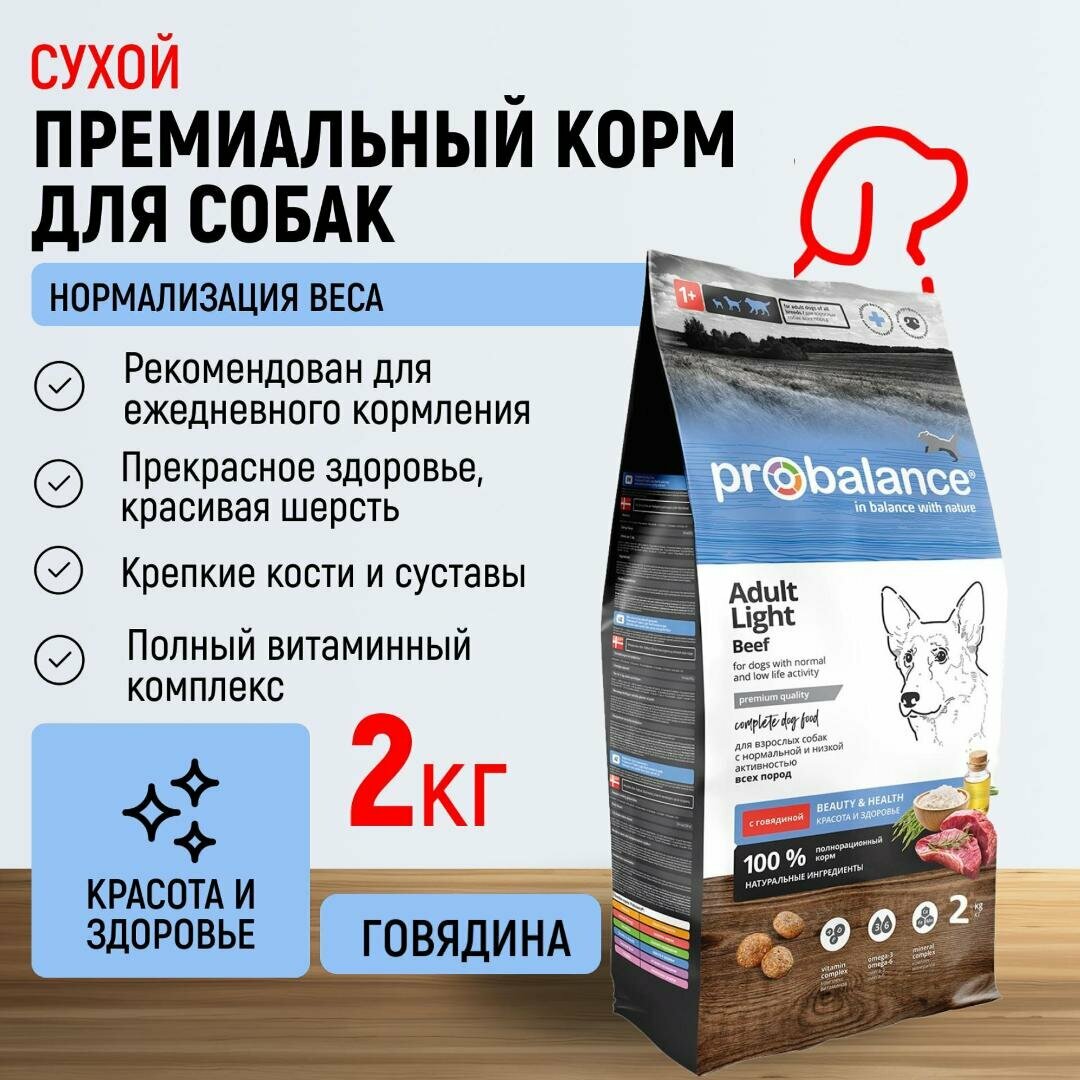 Корм для собак Сухой корм ProBalance Light Beef 2 кг с говядиной для собак с низкой или нормальной активностью