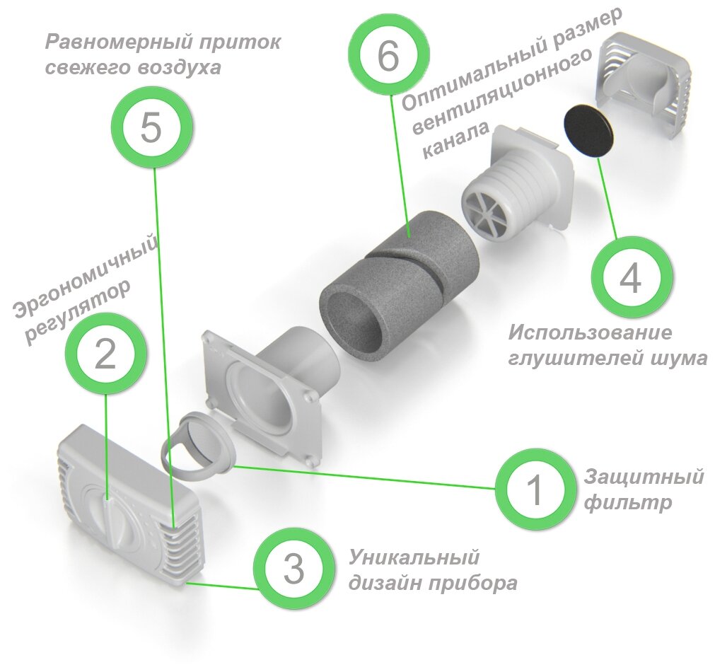 Рекуператоры и приточные установки Вентиляционный клапан ИОН приточный белый