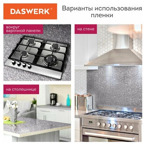 Самоклеящаяся пленка, алюминиевая фольга защитная для кухни/дома, 0,6х3 м, серебро, узор, DASWERK, 607846, комплект 2 шт.