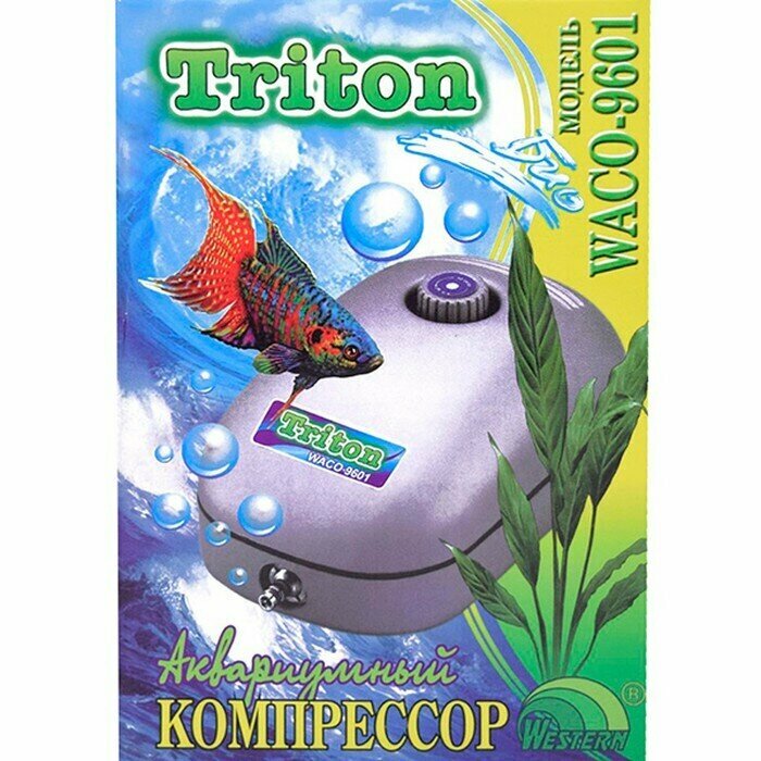 Компрессоры Компрессор для аквариума Triton waco-9601 до 90л 2вт 3,2л/мин одноканальный