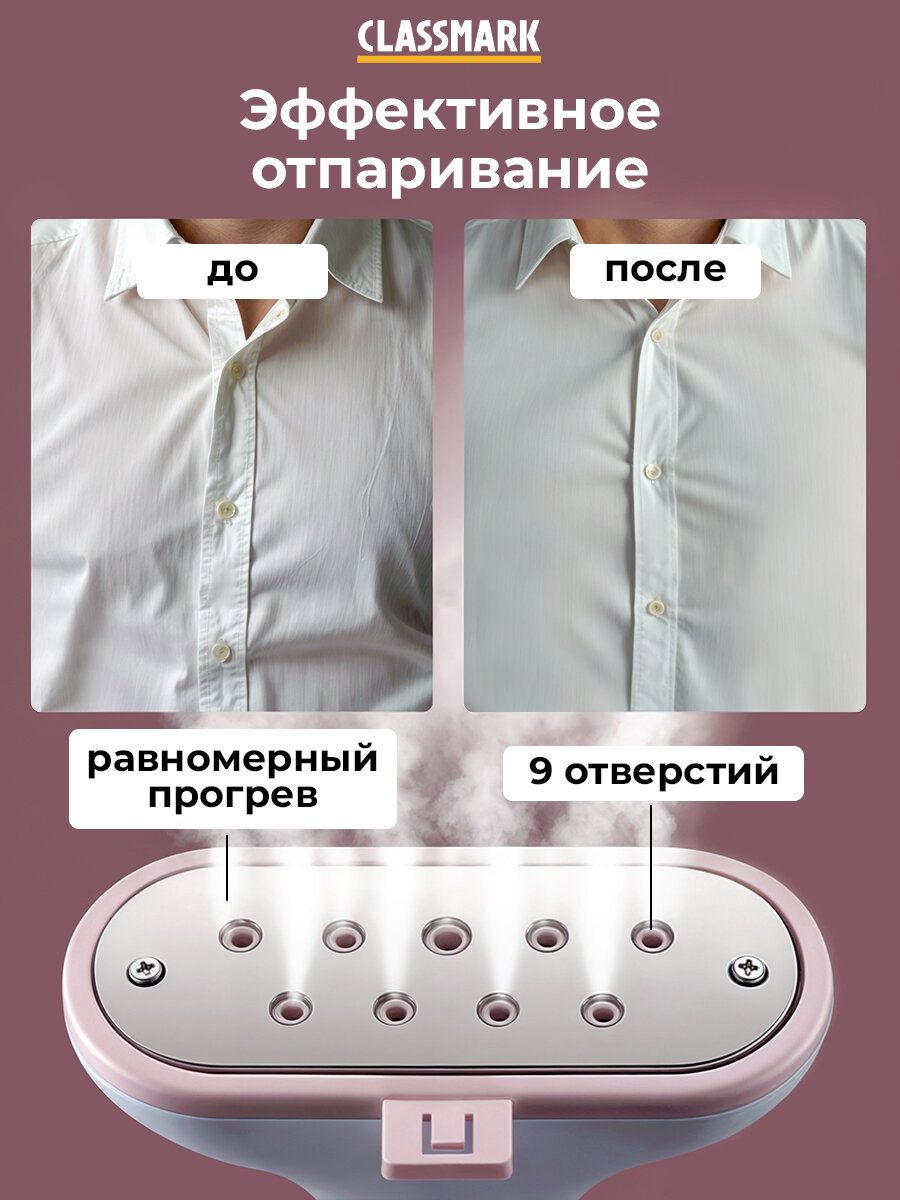 Отпариватели одежды Отпариватель для одежды вертикальный напольный Classmark телескопическая стойка с вешалкой и гладильной доской, 2000 Вт, регулятор пара для разных тканей, съемный резервуар емкостью 2л