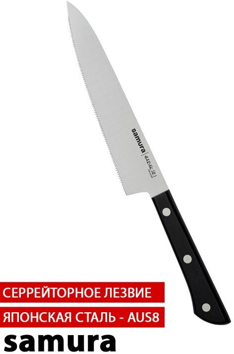 Кухонный нож Нож кухонный универсальный серрейтор Samura HARAKIRI SHR-0024B, 15 см, черный