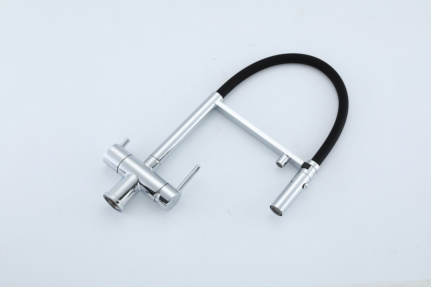 Смеситель для кухни с гибким изливом и подключением фильтра питьевой воды, черный матовый