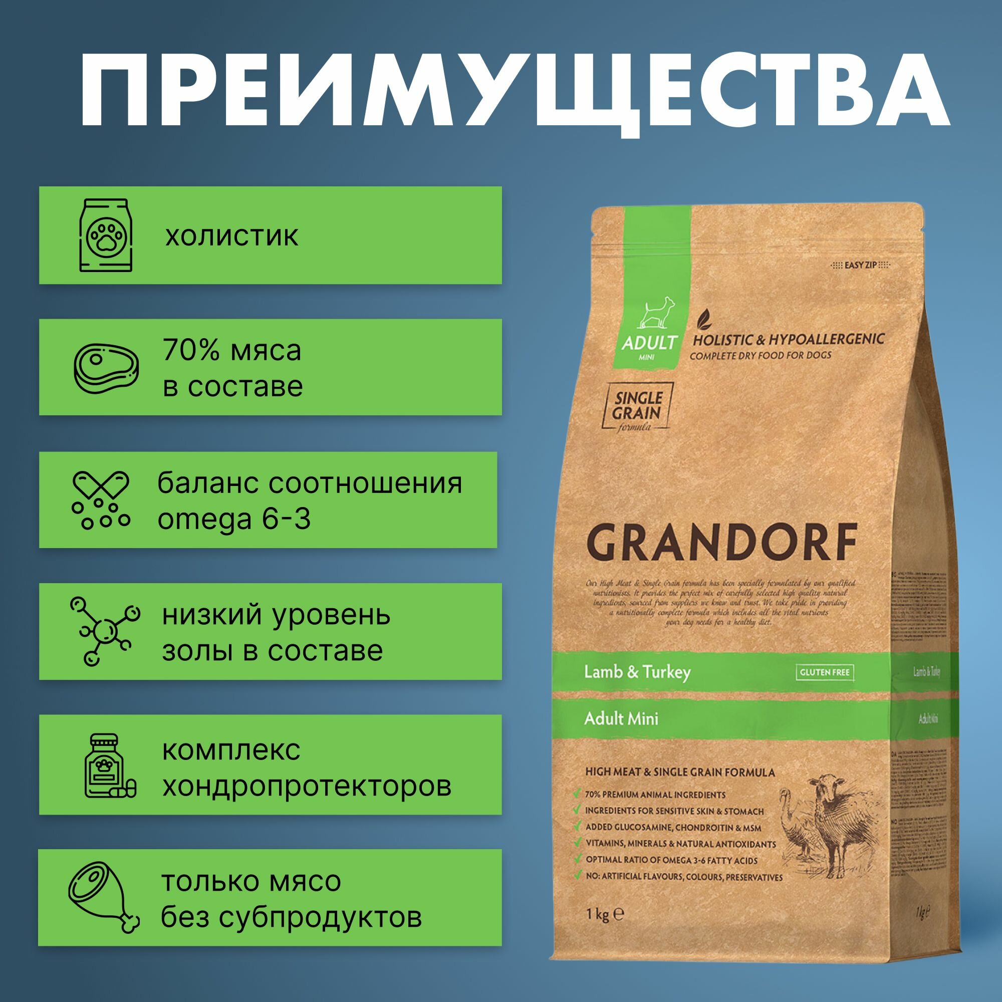 Корм для собак Корм для собак сухой для мелких пород Grandorf с ягненком и индейкой, 1кг