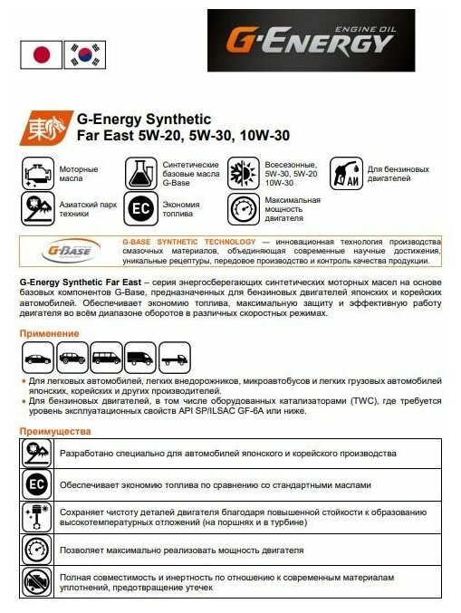 Масло моторное G-ENERGY Far East 5W-30 4л синт. API SN/GF-5