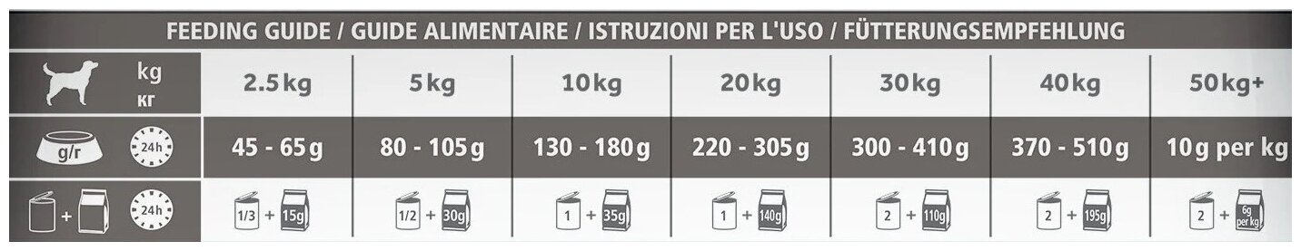| Ингредиенты | мясо телятины, печень говяжья, вымя, овощи, рис, зародыши пшеницы (цикорий, масло соевое, жир рыбий, трикальцийфосфат, кальция карбонат, натрий хлористый) |